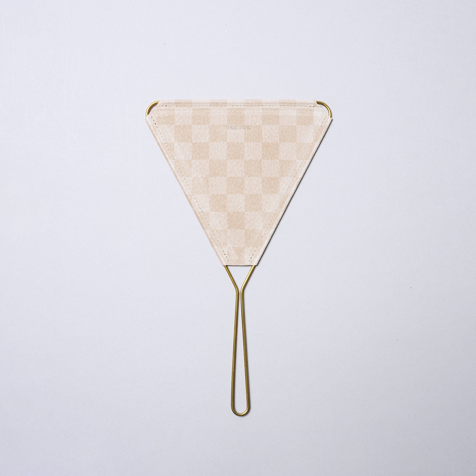 UCHIWA is a traditional Japanese fan crafted from durable, lightweight, and supple Tokyo-produced pigskin. Its brass frame lends an air of sophistication, and it features a design that allows it to be attached to bags or clothing using a carabiner or keyring, making it a fashionable accessory to carry.