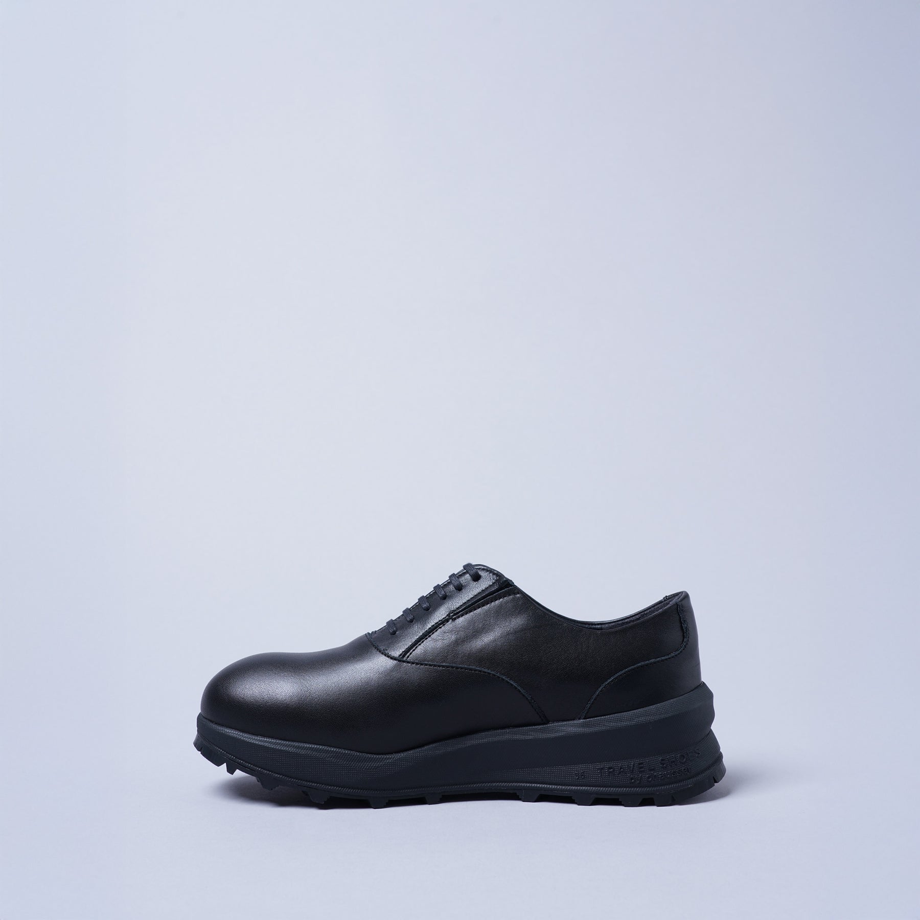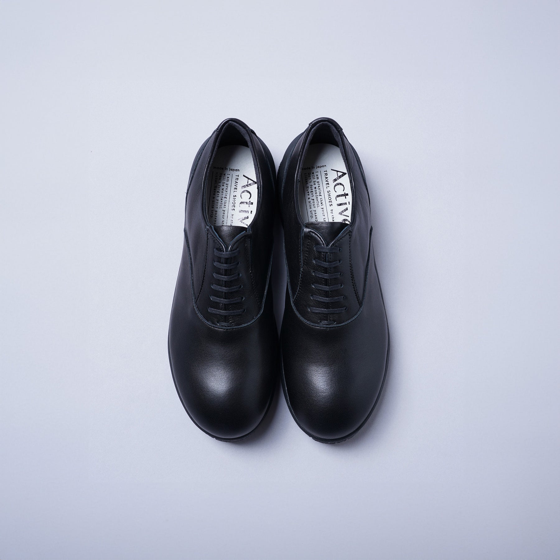 Active TRAVEL SHOES's plain-toe shoes with an internal vamp design securely wrap around the instep for a stable fit. Perfect for casual occasions, they can also be worn for formal events when needed. All Active styles incorporate padding at the collar for comfortable support during extended wear. As a travel-themed series, TRAVEL SHOES includes a convenient shoe bag for carrying them to your destination. The leather used features a soft texture, achieved by embedding fluororesin into the fibers during dyeing and applying a water-repellent finish to the surface. It repels water while allowing airflow, maintaining breathability.