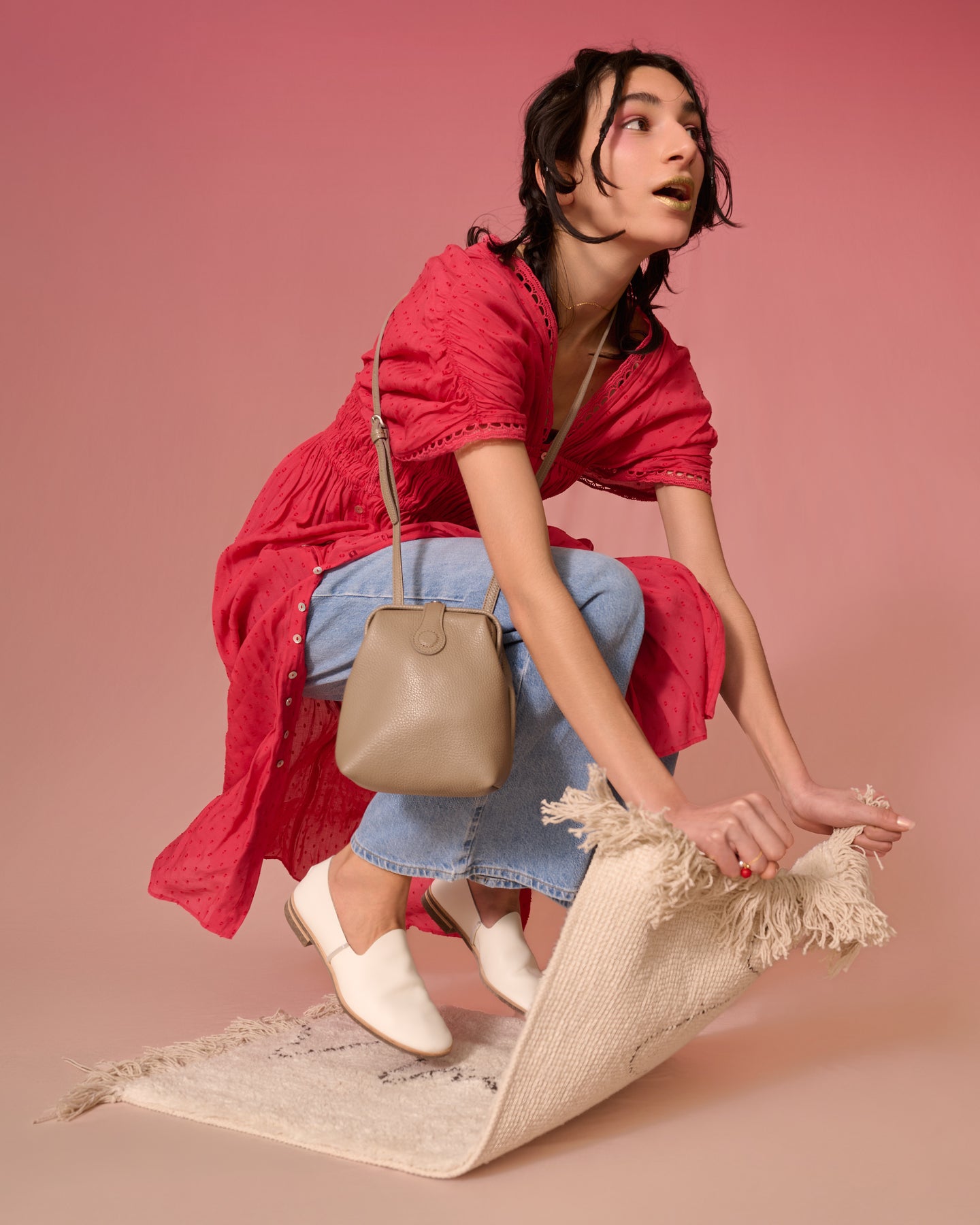 カジュアルバカンススタイルにはナチュラルカラーを リラックスしたい日は、服もバッグも、少し肩の力が抜けているくらいがちょうどいい。この大きくて丸いバッグは、海辺でもシティーにも対応してくれる優れもの。 使用アイテム U-DOT<ユードット>スリッポン/ホワイト $223.00 ESTINEトートバッグ オーク $294.00 itten-ittenミニ財布 ブルー $142.00 Selieuアクセサリー サクラ $152.00 売り切れ Selieuアクセサリー ローズ $152.00 使用ブランド シンプル&ミニマムで長く愛せるブランド Atelier nuu 一枚革で足を包み込む柔らかく、軽いシューズブランド U-DOT モードでモダンなどこか目を惹くデザイン ESTINE ”一点一点”丁寧に!カラフル財布を買うなら! itten-itten 身につけると自然と笑顔が溢れるレザーアクセサリーブランド Selieu HIPSTARアイテムコレクション