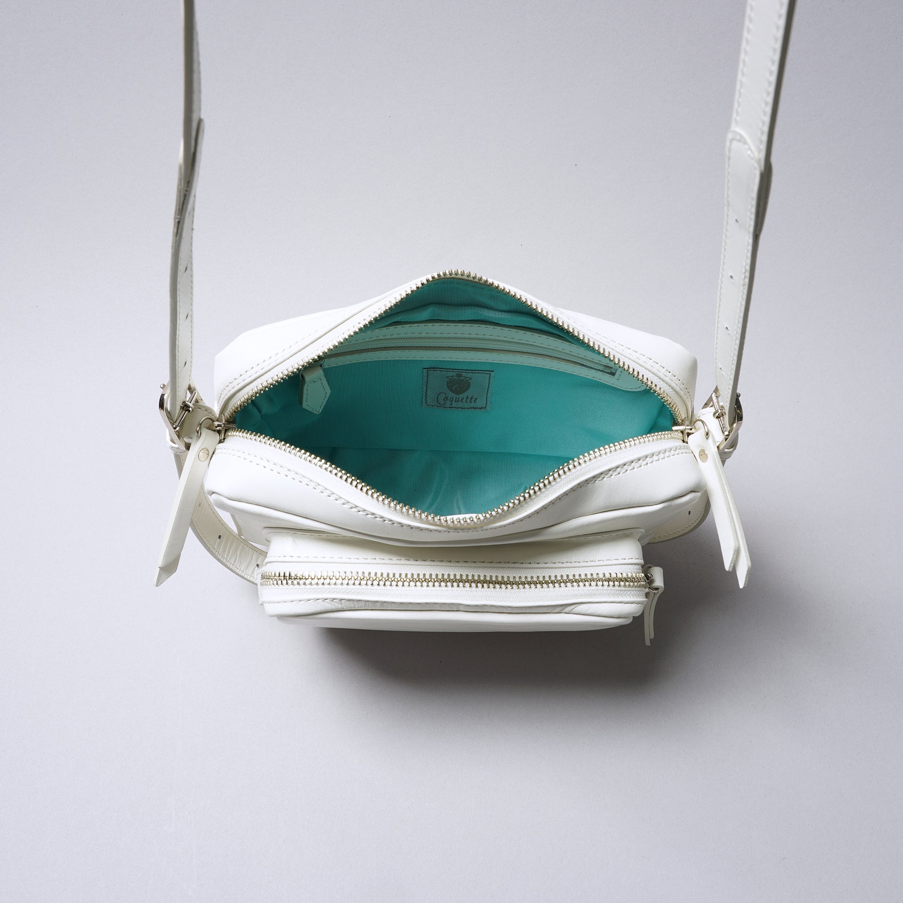 両サイドで長さが調整できるショルダーは、冬のコートの上からも余裕の長さ。