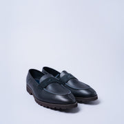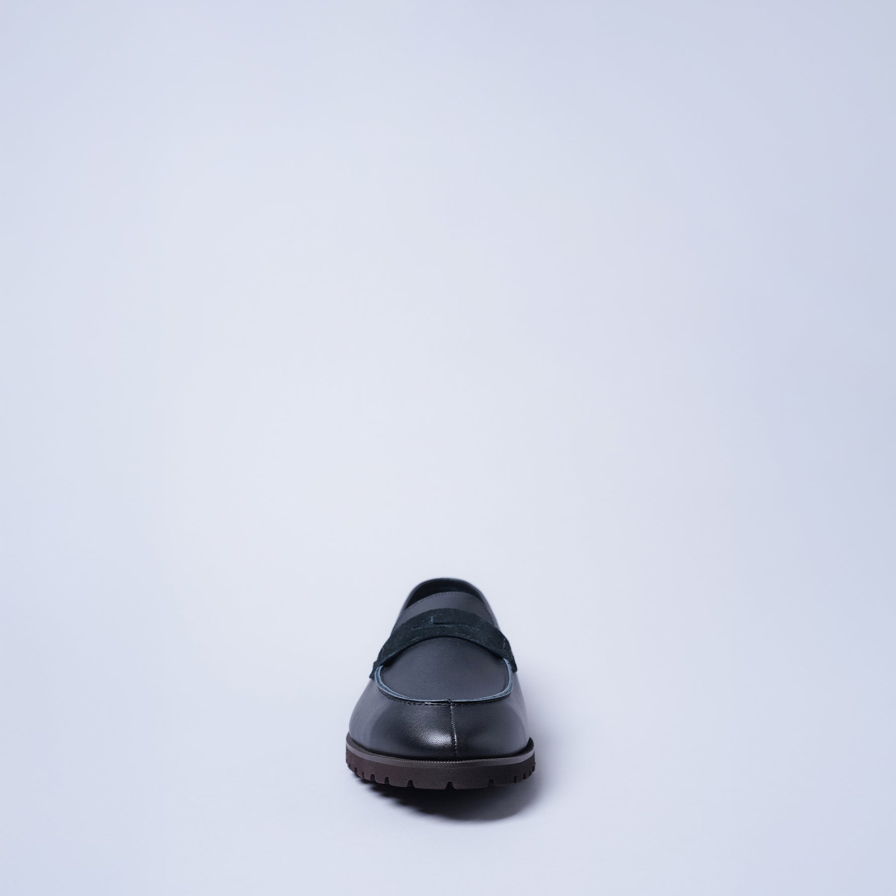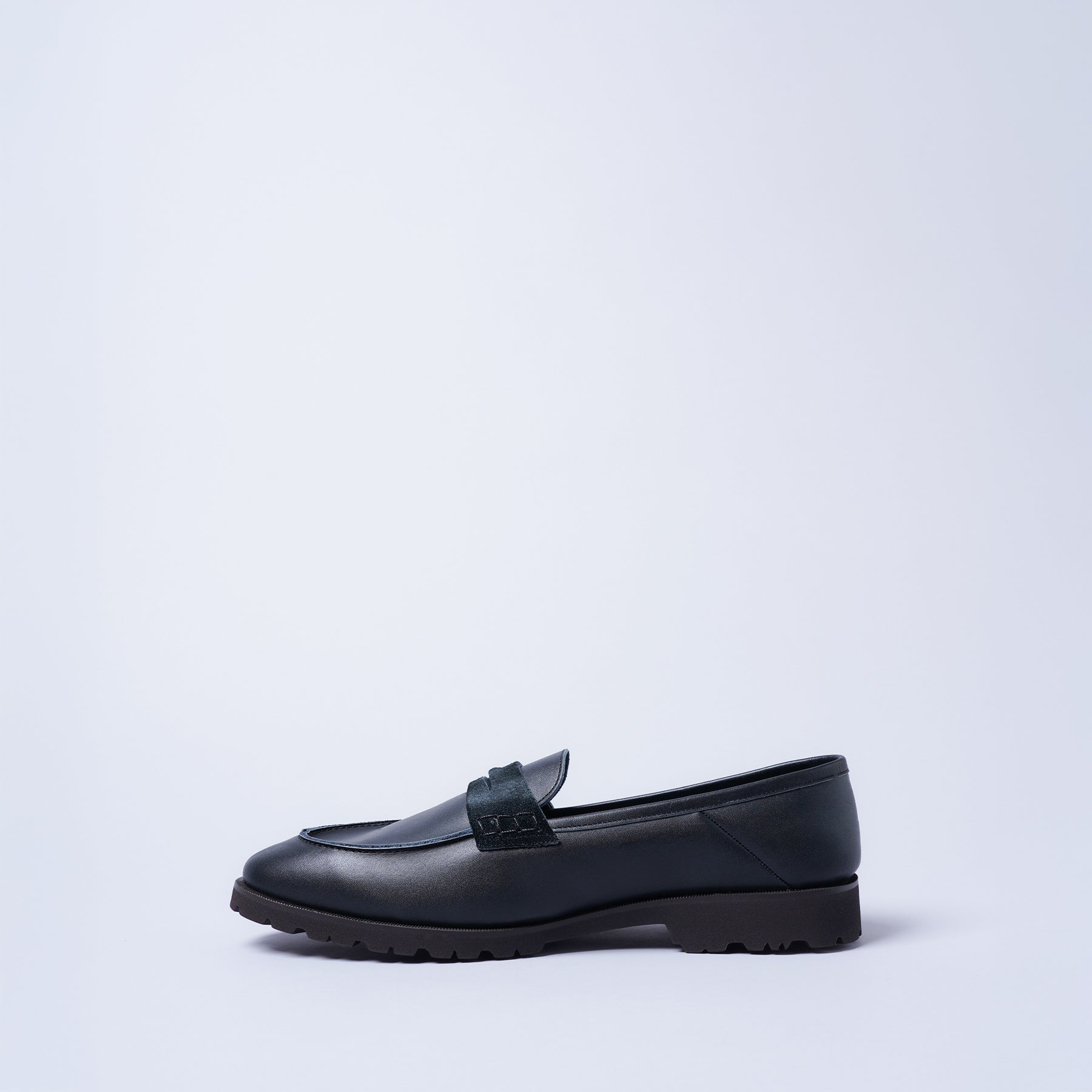 ローファーのサドル部分は、レザーの床面(裏地)を使用したスウェードがアクセント。