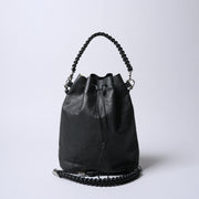 ■シンプルな本体にアイコニックな存在としてそれぞれ取り外し可能なレザーの編み込みのハンドルとショルダーストラップ(長さ調整可能)をあしらっています