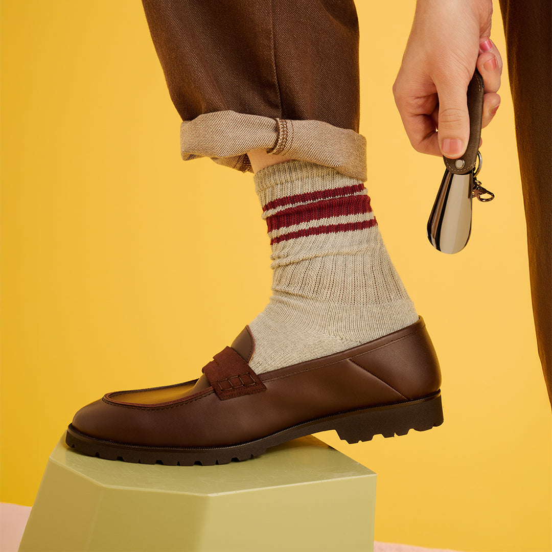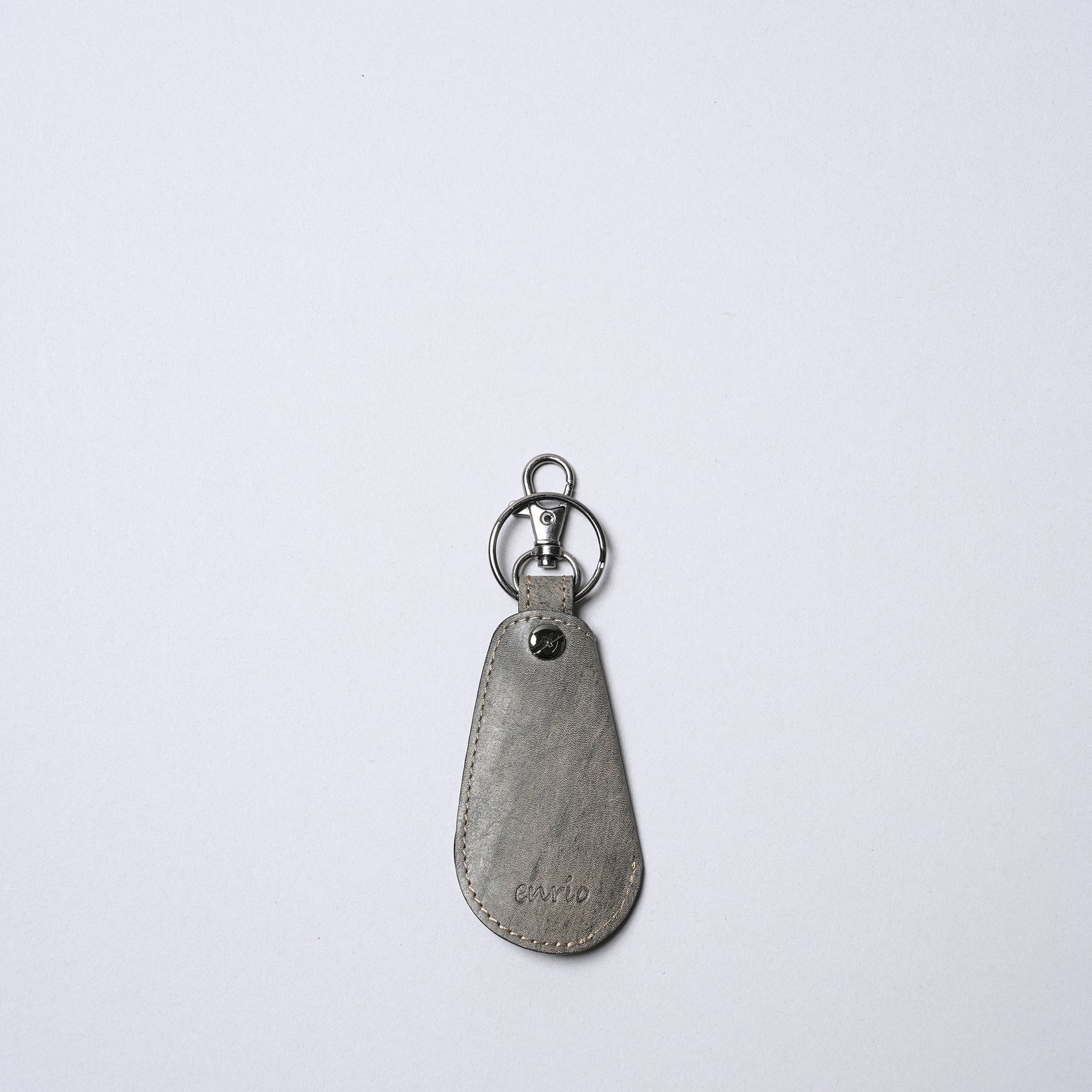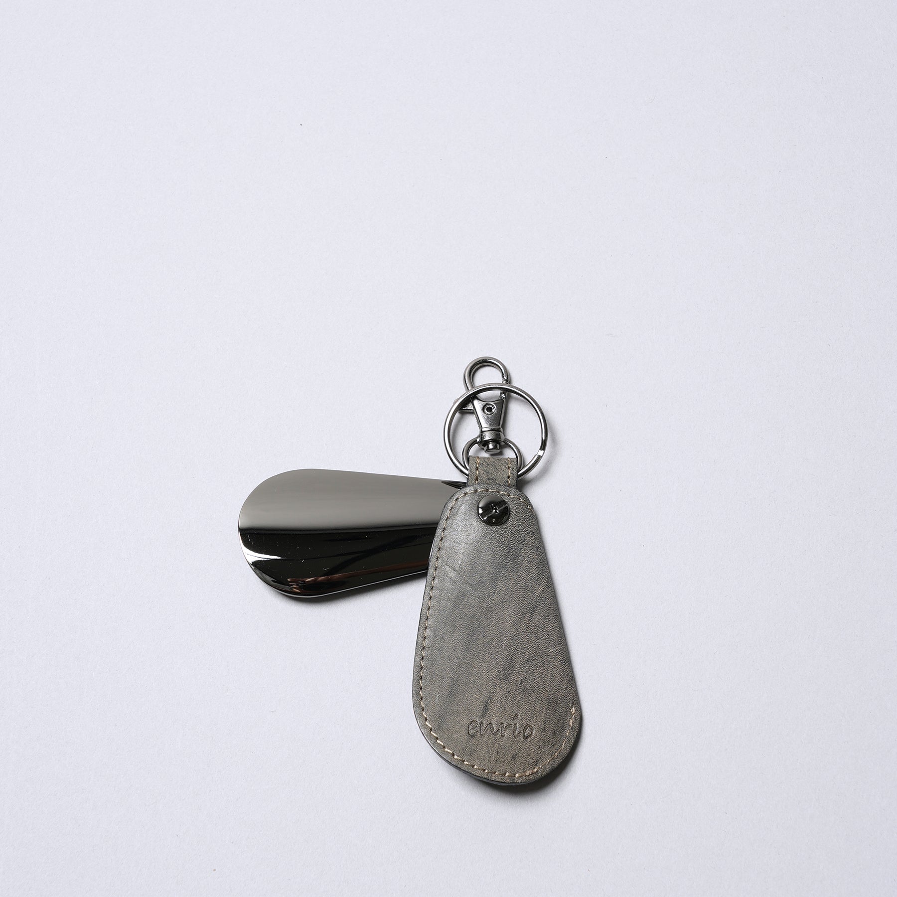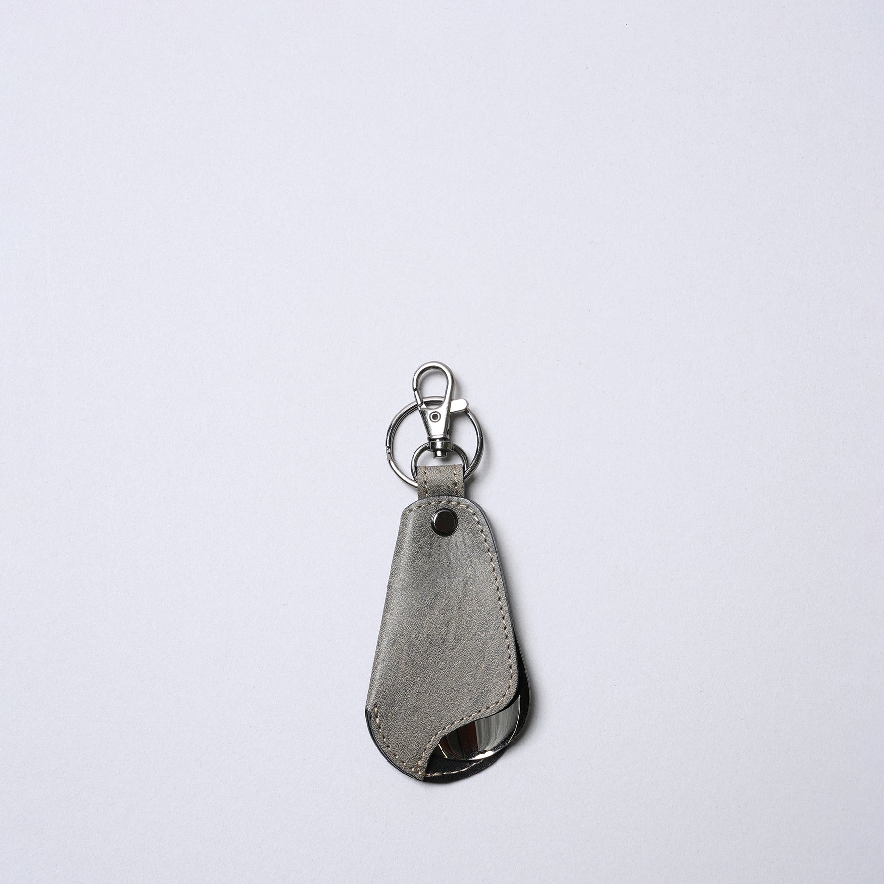 生後6ヶ月から2年程度の仔牛の革であるキップレザーを使用しています。きめ細かく、しっとりとした滑らかな肌触りが特徴で、成牛革に比べると薄手ながらも繊維が密で強度があります。使い込むほどに手に馴染み、美しいエイジング(経年変化)をお楽しみいただけます。その牛革に 日本古来の染色技法である墨染めを施しています。墨の持つ独特の深みのある黒色は、単調な黒色とは一線を画し、奥ゆかしい表情を生み出します。手作業による染色のため、一つひとつ異なる色合いや濃淡が現れ、唯一無二の個性となります。墨の自然な風合いが、革本来の素材感を引き立てます。靴ベラとしての機能に加え、キーホルダーとしても使える便利な一体型デザインです。日常使いに最適で、持ち運びにも便利です。バッグなどに取り付けられるキーリングが付いているため、紛失防止にも役立ちますし、使いたいときにすぐ使える便利さがあります。上質なキップレザーの滑らかな質感と、墨染めによる深みのある色合いが、さりげないながらも上品な印象を与えます。