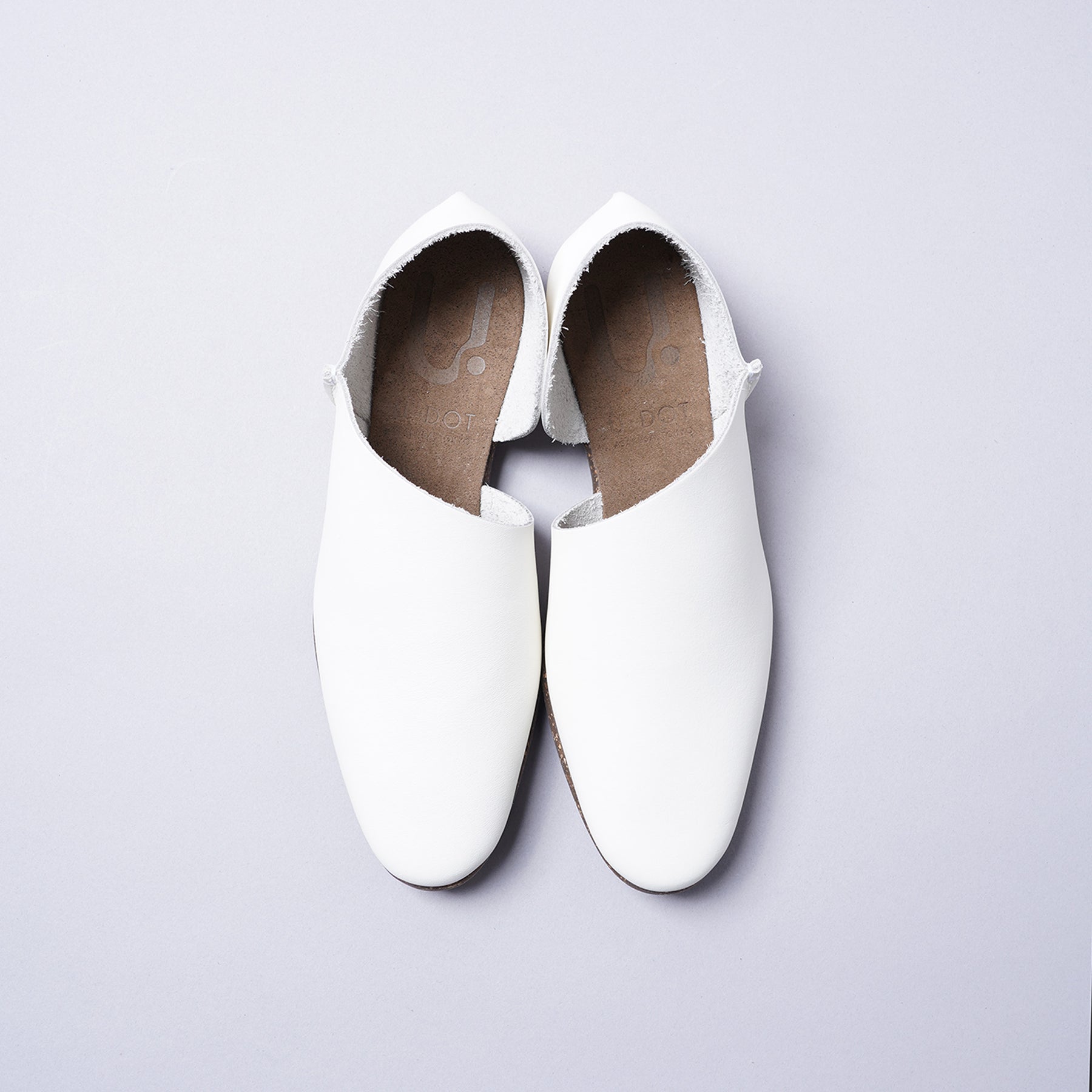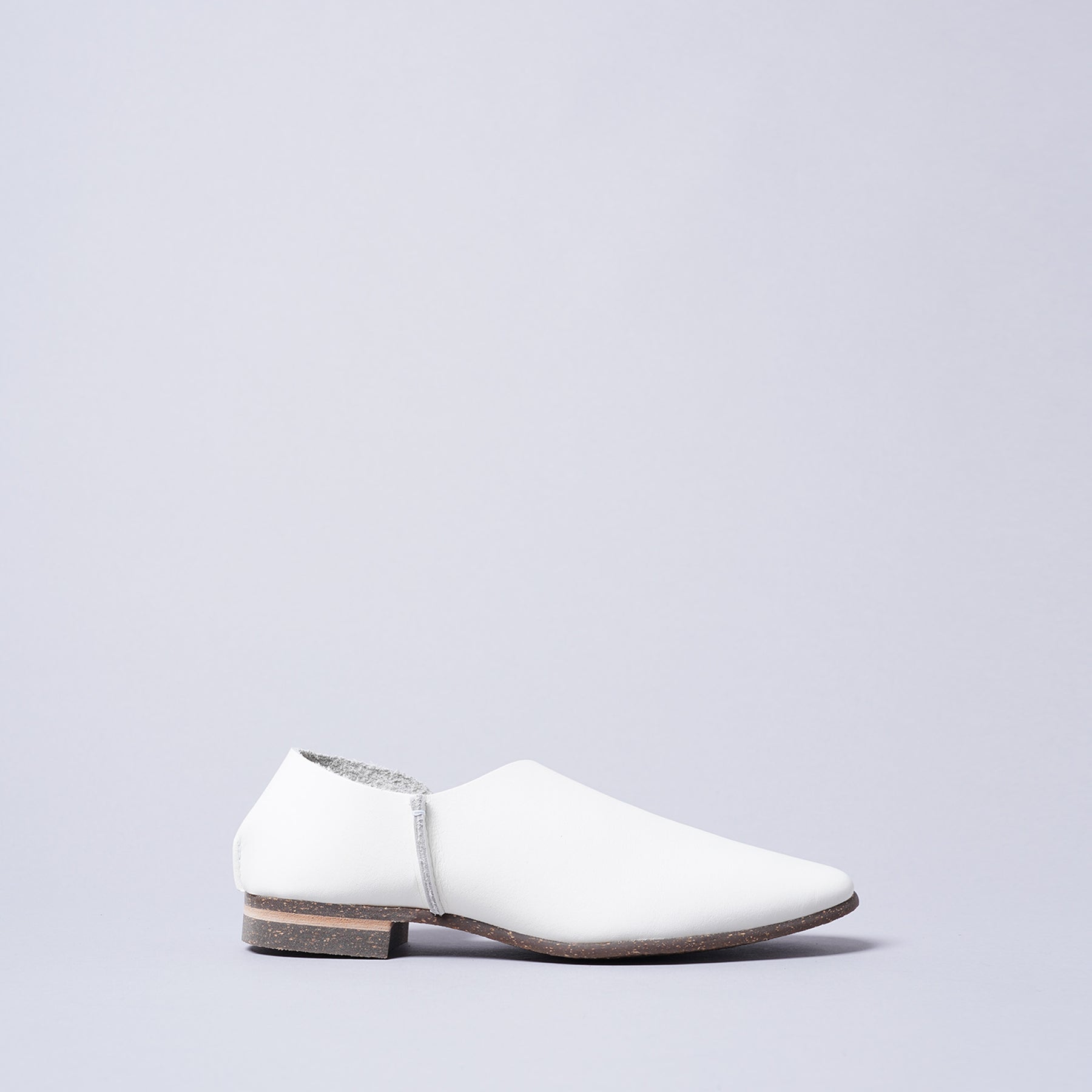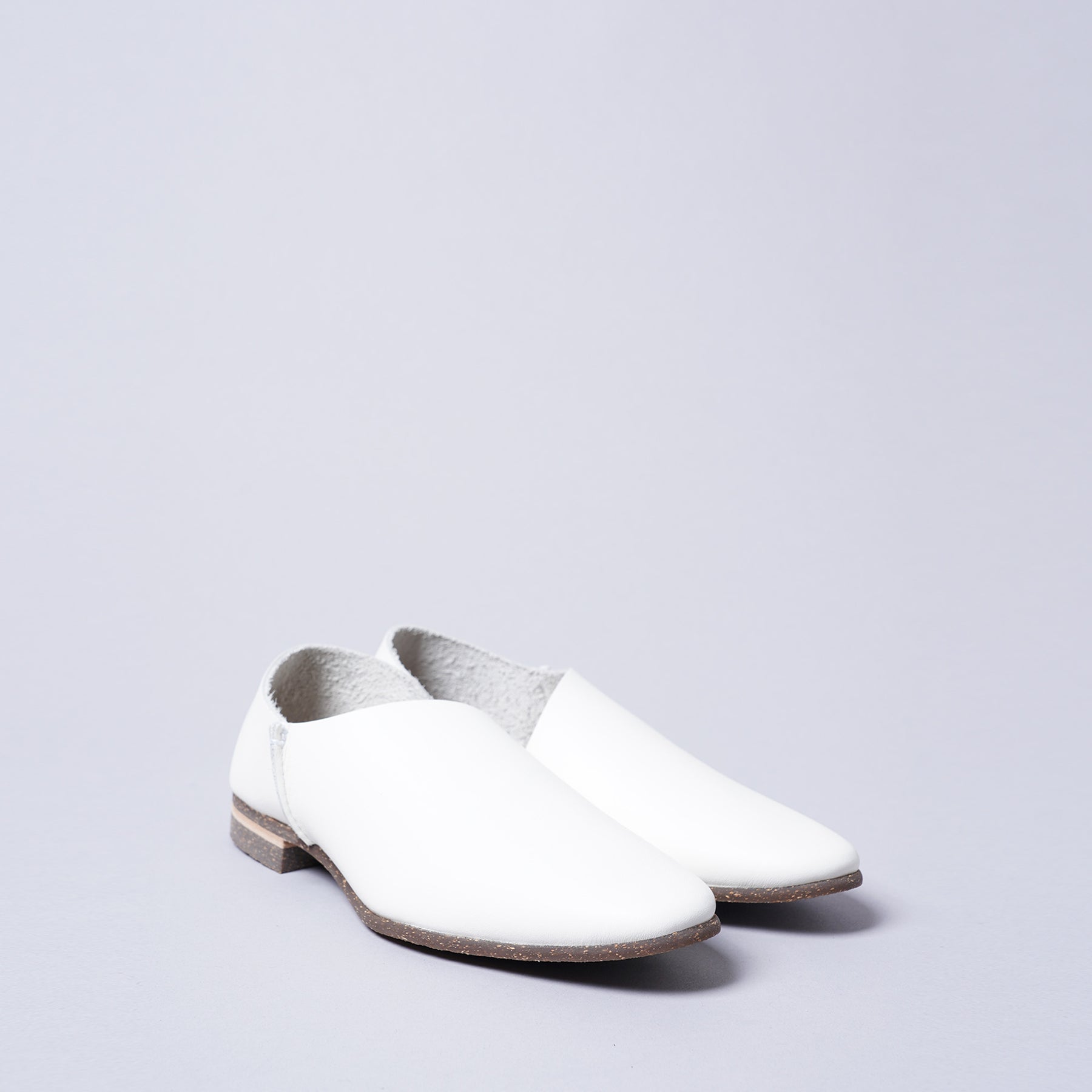 前後2枚の革を合わせて作られたスリッポン。上から見ても横から見ても斜めのカーブがとても魅力的です。甲からくるぶしにかけて綺麗に見える様に計算しつくされたシューズです。