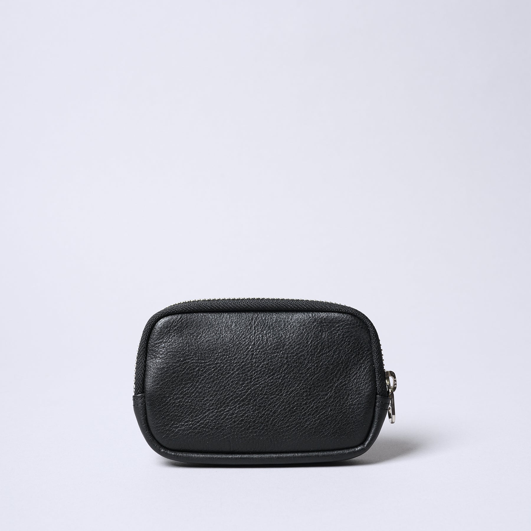 A versatile pouch that holds keys, coins, cards, cosmetics, and gadgets. Features a soft, rounded form created by leather stitching and a large zipper. The Inside includes a pocket and a convenient detachable key chain. The interior uses a slightly napped pig suede with fine fuzziness, gently cradling your belongings. A handy pouch for multiple uses depending on your needs.