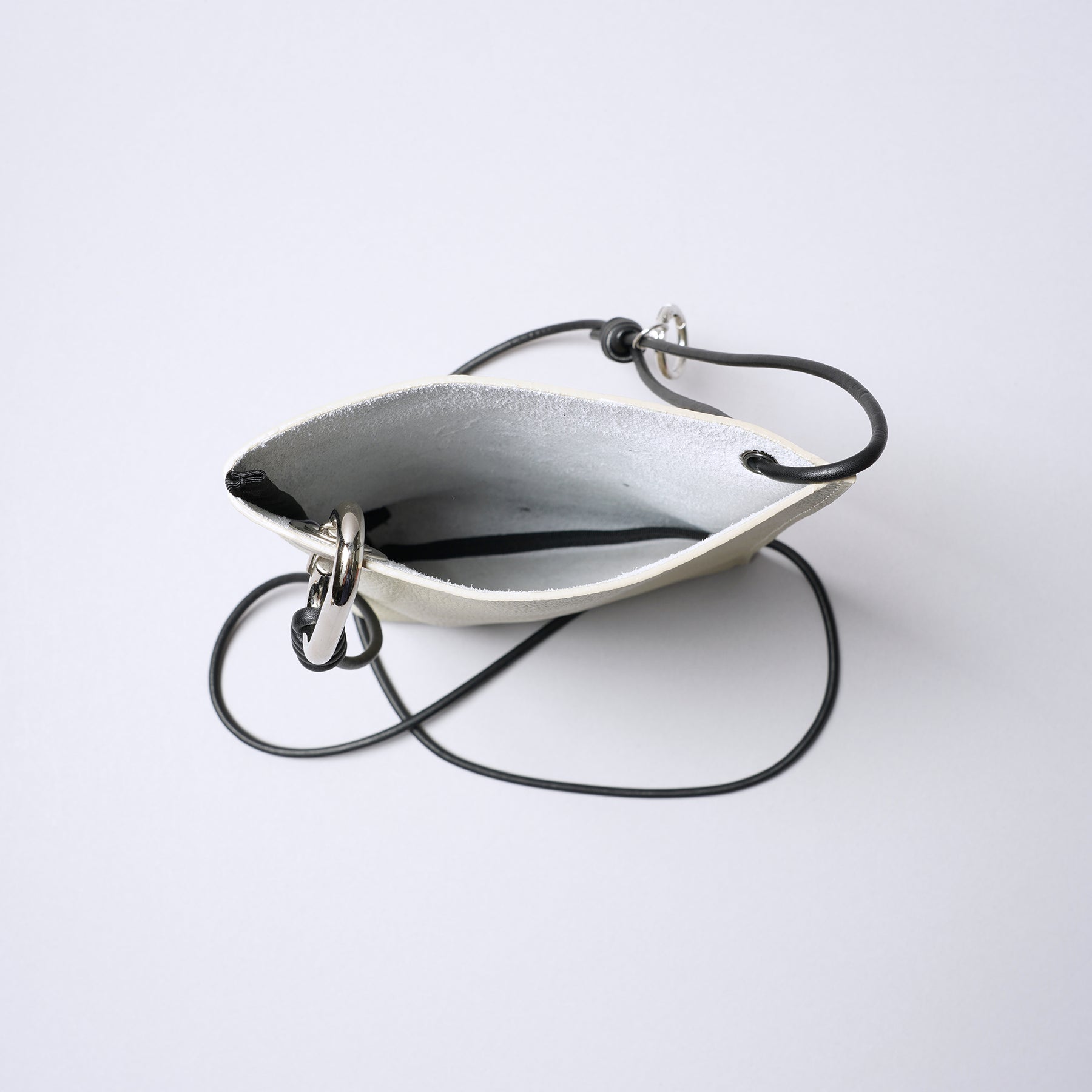 Shrink Leather Mini Shoulder Bag / Black x Ivory