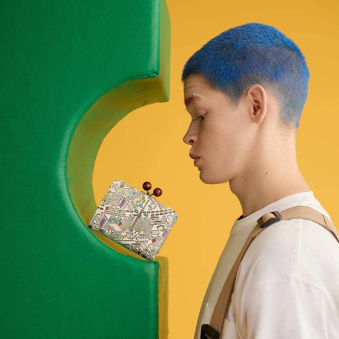 がま口部分はコイン収納部となっており、ボックス型なので広々と便利にお使いいただけます。カード段は5箇所、フリーポケットは4箇所、札入れは1箇所。収納を上手に使うことで長財布と同じく整頓しながら見た目以上に収納することができます。表面がフラットになるので、マップを広げるようにTOKYOシリーズも細部まで楽しんでいただけると嬉しいです。