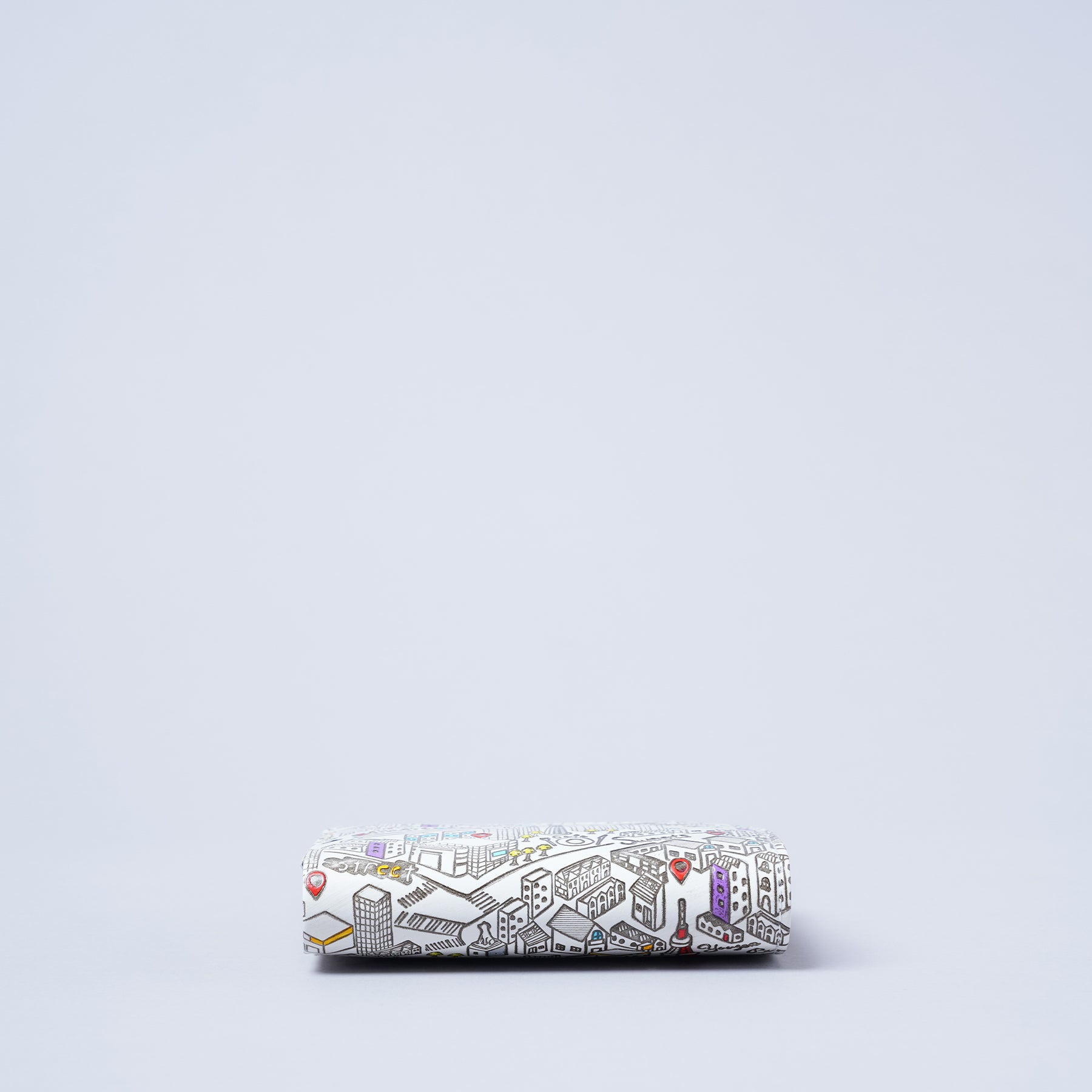 この「TOKYO」シリーズは、カジュアルをテーマに制作しました。日本・東京を象徴するランドマークをモチーフとして各所散りばめたデザインで、6色の彩色がなされており見るだけで元気になる遊び心のある柄に仕上げました。白くなめした本革に職人が一つひとつ丁寧に彩色を施した所作から仕上がりまで温もりのあるアイテムです。
