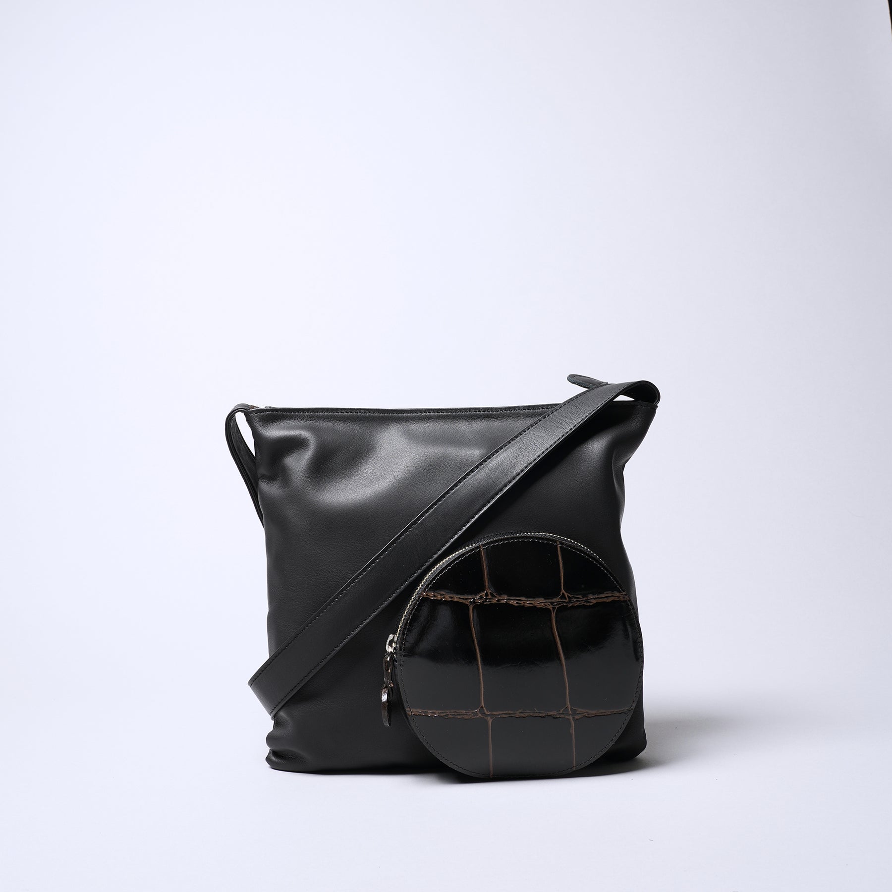 This series features a combination of premium natural-finished oiled leather and large crocodile-patterned pockets. Its slim profile allows it to fit snugly against your body while offering ample storage space.