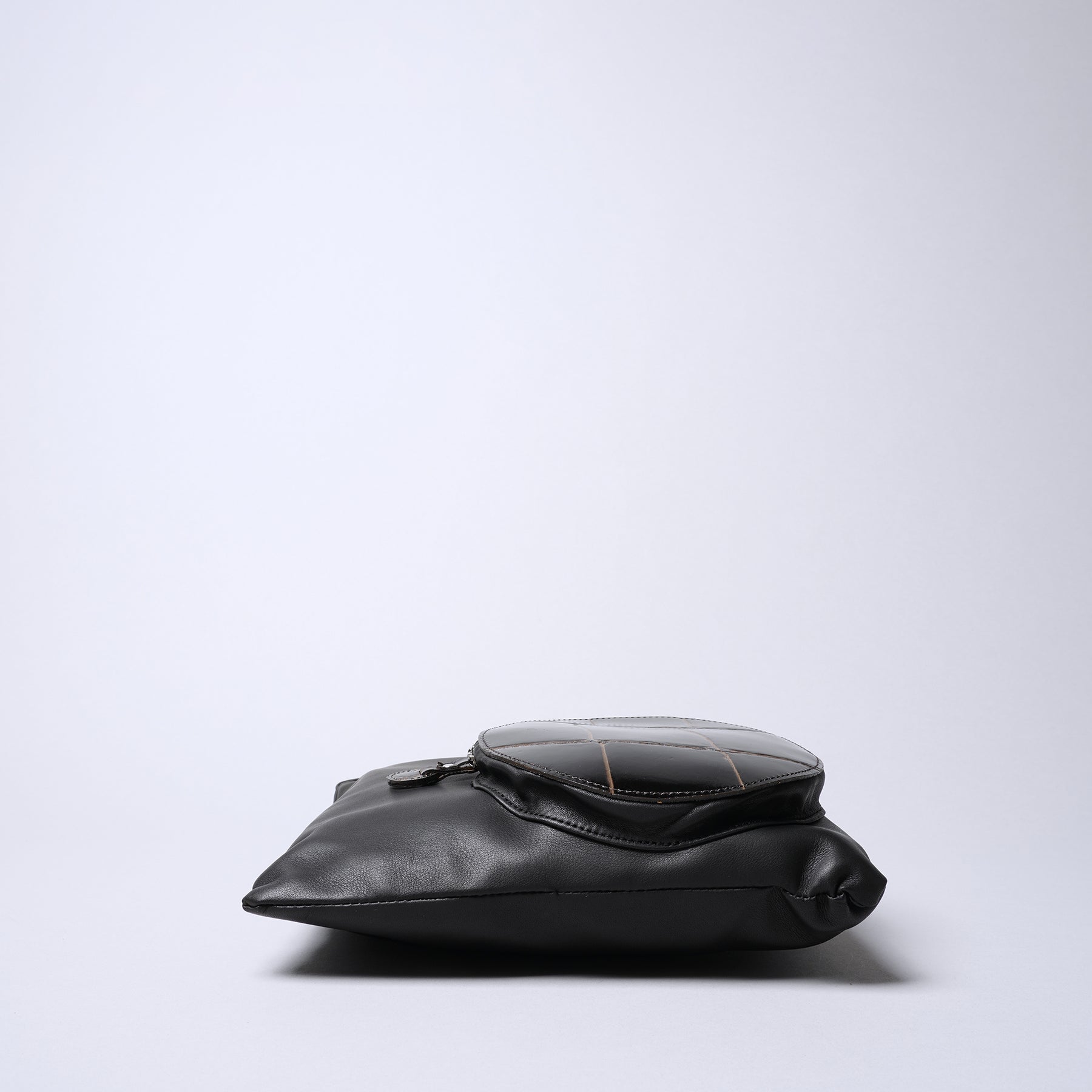 <REAL MIND BL> Thin Gusset Shoulder Bag / Black