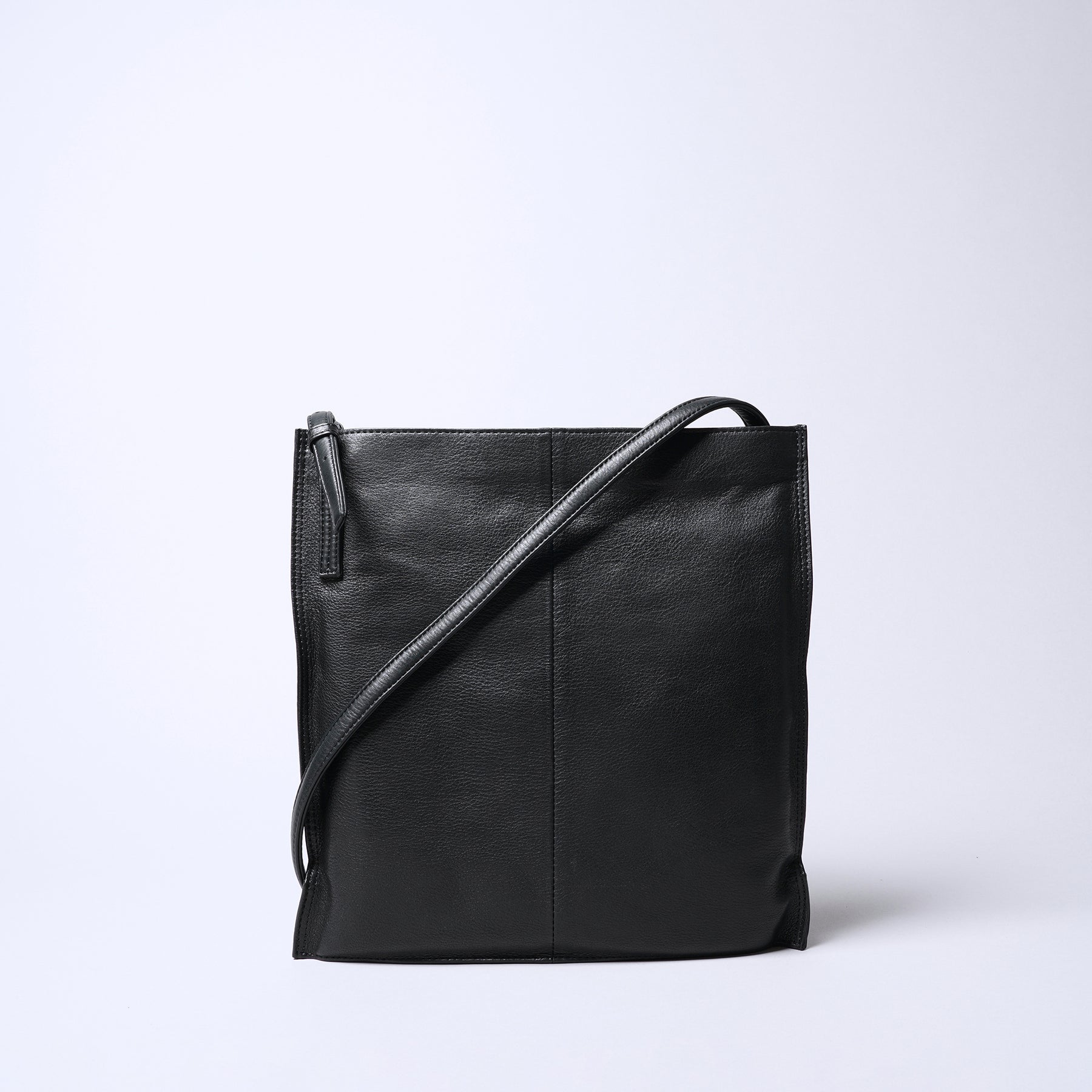 Crafted from soft, supple cowhide leather with a pleasant feel, this design emphasizes clean, straight lines to deliver a sleek, sophisticated look when carried. The gusseted construction allows the bag to expand when filled, offering a dynamic change in its appearance.