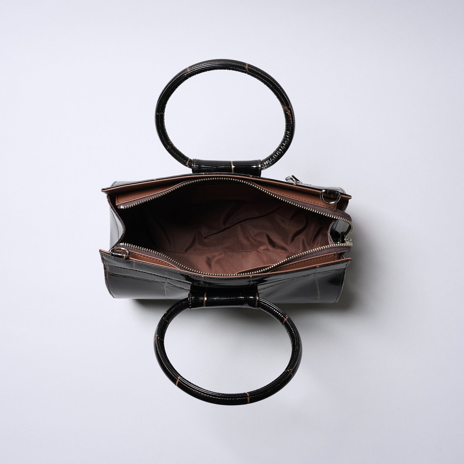 This cylindrical shoulder bag features luxurious large crocodile-embossed cowhide leather throughout. While it appears structured at first glance, it pairs effortlessly with casual outfits and is easy to carry.