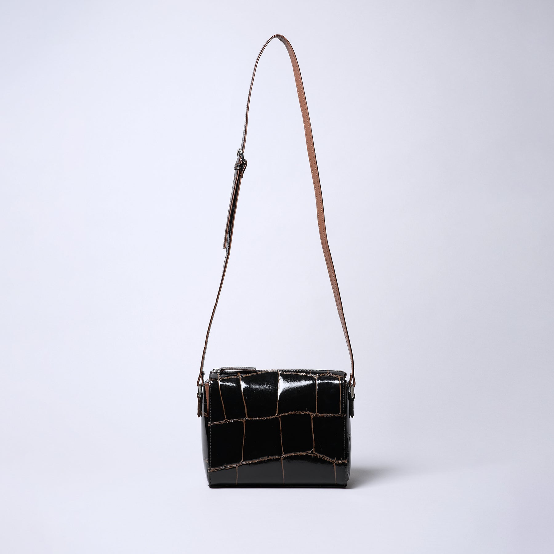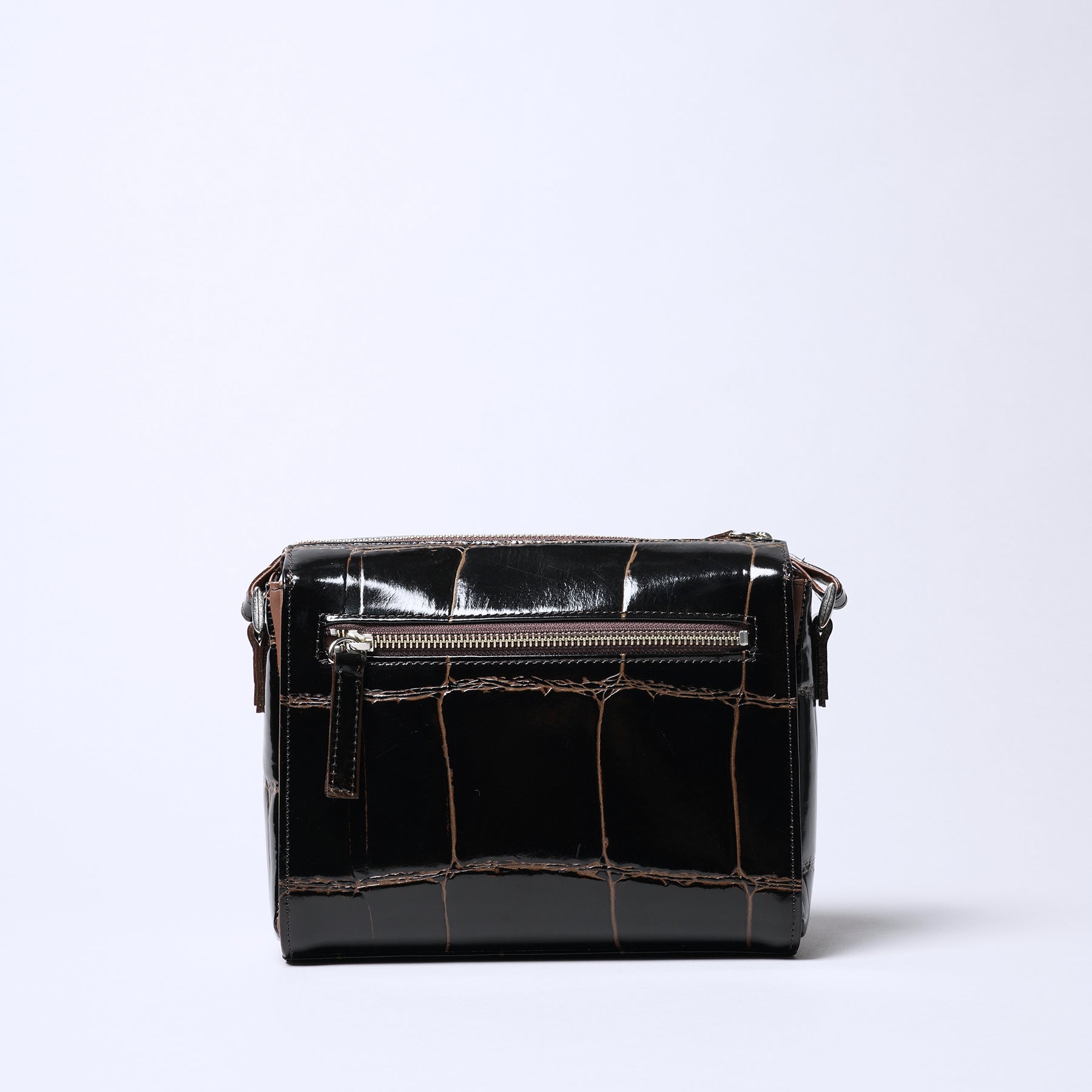 This cylindrical shoulder bag features luxurious large crocodile-embossed cowhide leather throughout. While it appears structured at first glance, it pairs effortlessly with casual outfits and is easy to carry.