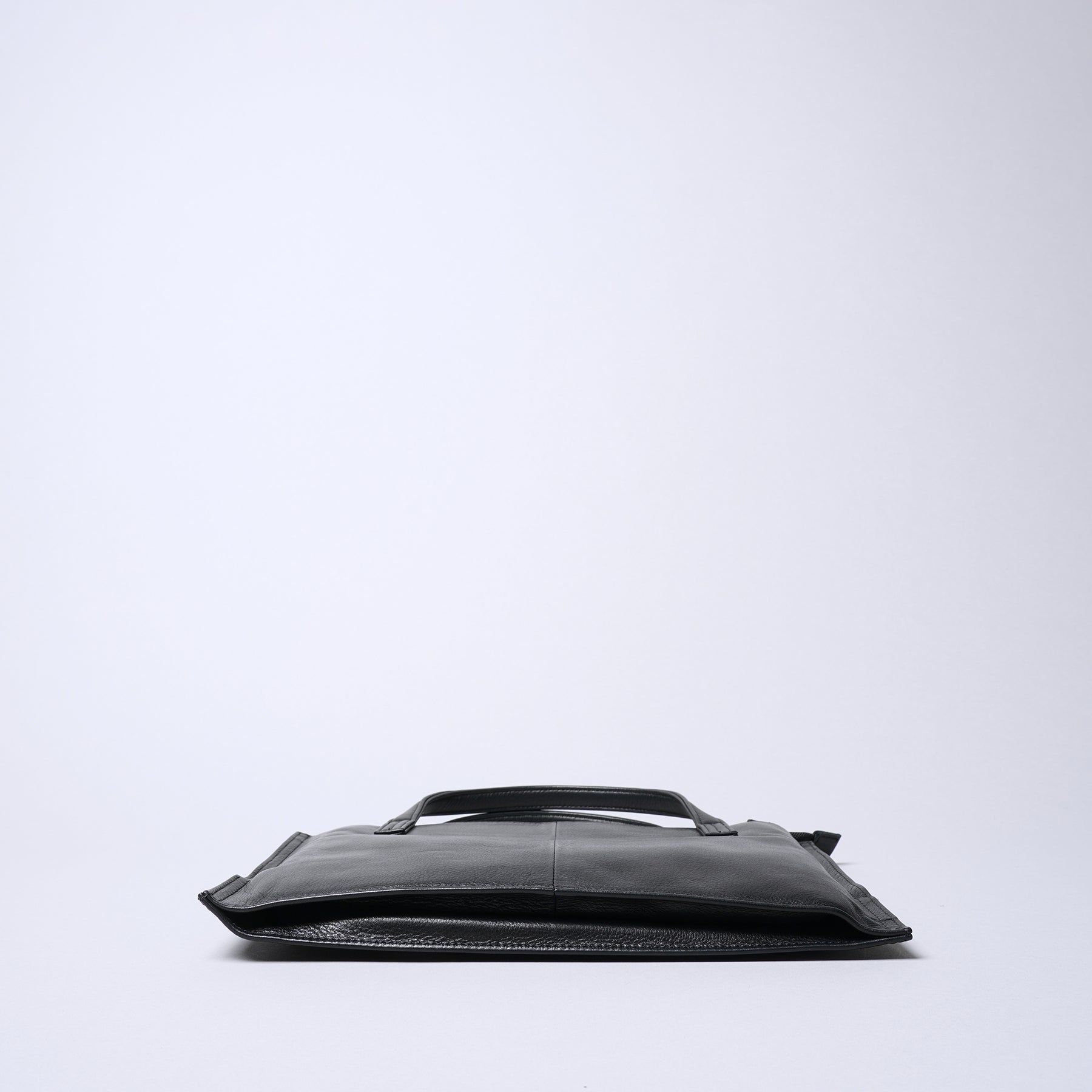 Crafted from soft, supple cowhide leather with a pleasant feel, this design emphasizes clean, straight lines to deliver a sleek, sophisticated look when carried. The gusseted construction allows the bag to expand when filled, offering a dynamic change in its appearance.