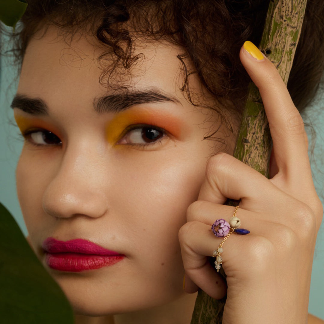Free-size chain ring for any finger. The slide ball moves for easy on and off. Combination of large and small pigskin flowers and large and small natural stones. The chain swings around your finger, creating a glamorous effect. Can be worn with your existing hoop earrings or as a charm on a necklace chain. Enjoy a wide range of arrangements.*Due to the nature of handmade products and natural stones, there are individual differences in the shape and color of each piece.Selieu is a jewelry brand that expresses the beauty of nature in a small way. Combining the blessings of nature, such as soft, high-quality pigskin, natural stones and pearls, Selieu creates jewelry that allows you to enjoy the textures and colors, one by one. Wear Selieu jewelry and you will naturally start smiling. Selieu was launched in 2014 as a way of expressing oneself. The company also organizes workshops and supervises projects for the promotion and development of the leather industry.