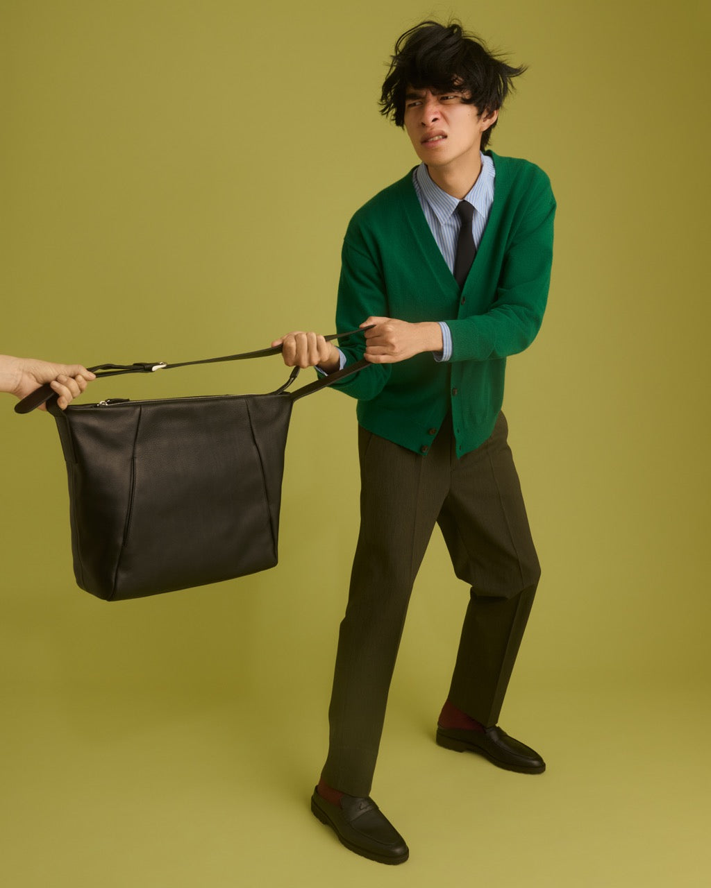 おちゃらけフォーマルスタイル クスッと笑えるような少し崩したコーディネートには、ベーシックで落ち着いたレザーアイテムをプラス。コーディネートとのバランスをとって合わせよう。 使用アイテム Dakota BLACK LABEL<Dakota BLACK LABEL>AM8系列 斜肩包/棕色 $243.00 Dakotaショルダーバッグ 綠色 $182.00 VIA DOAN<VIA DOAN>Zilda 方形斜肩包/黑色 $547.00 賣光了 LEZALI<LEZALI>壓花皮革MT零錢包/天藍色 $37.00 CYPRISミニ財布 綠色 $182.00 Hawk Feathers二つ折り財布 Brown $223.00 賣光了 Liberato樂福鞋 黑色 $354.00 使用ブランド 持つ人の個性を引き立てるレザーアイテムを提案 Dakota BLACK LABEL ナチュラルなカジュアルアイテムを発信 Dakota ”愛を込めた”手作業がコンセプト VIA DOAN ちょっと面白く便利な雑貨小物などの商品を展開 LEZALI 上質な暮らしを愉しむ大人のためのレザーグッズブランド NO SIGN コダワり派のあなたへ!最高級な技術が詰まったブランド CYPRIS 日本人の熟練職人が生み出す、高い質感と既存のものとは一味違うアイディア Hawk Feathers アップサイクルした畳と柔らかな姫路レザーのシューズブランド Liberato FORMALアイテムコレクション