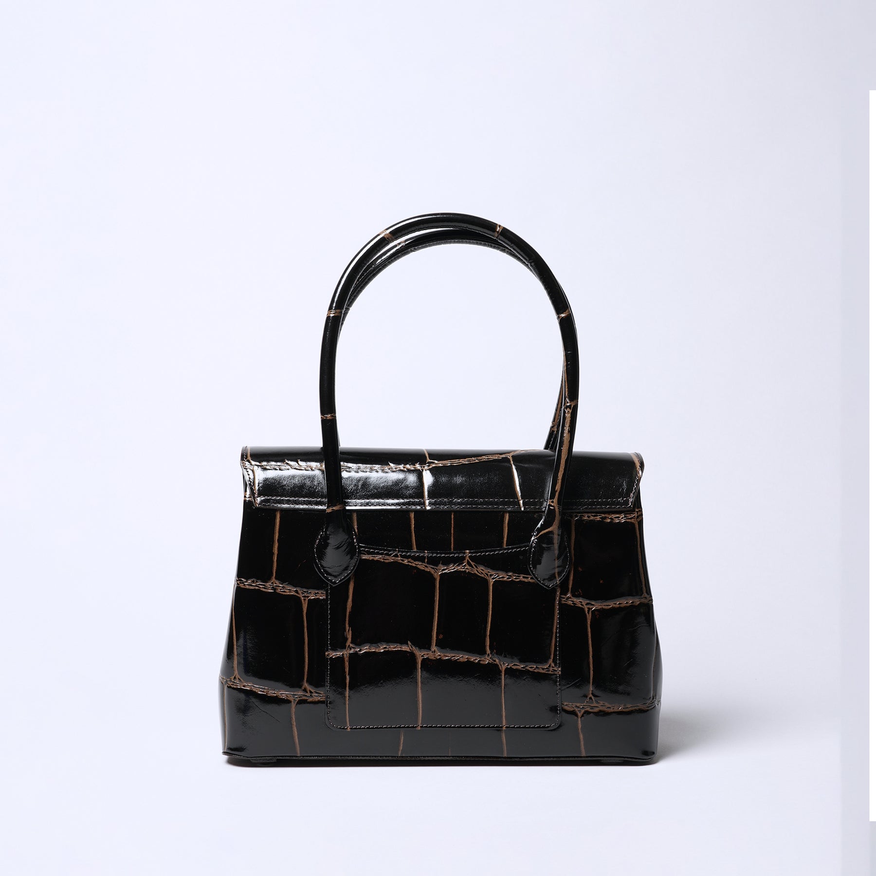 這款托特包奢侈採用大版鱷魚壓紋牛皮製作而成。單看包包雖給人較正式的印象,若搭配輕鬆休閒的穿搭反而能營造出休閒感,是一款日常也能攜帶使用的包包。