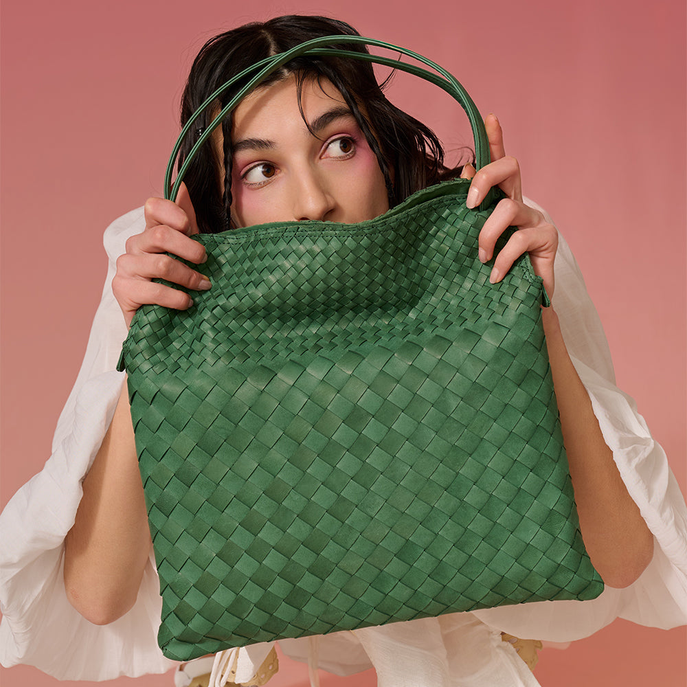 將輕盈柔韌的馬皮經過細幅裁剪後,一條一條編織而成的這款纖薄型半肩包,將側身厚度刻意收窄,包身上下以粗細不同幅寬的皮革無縫編織接合,形成獨特的原創網狀設計。隨著使用時間推移,包包表面將更顯光澤,並可享受皮革經年變化的樂趣。