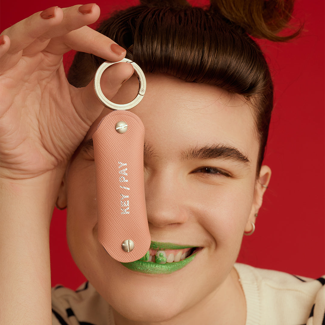 <1/2HALF>EMBOSS COW LEATHER KEY/PAY/粉紅色