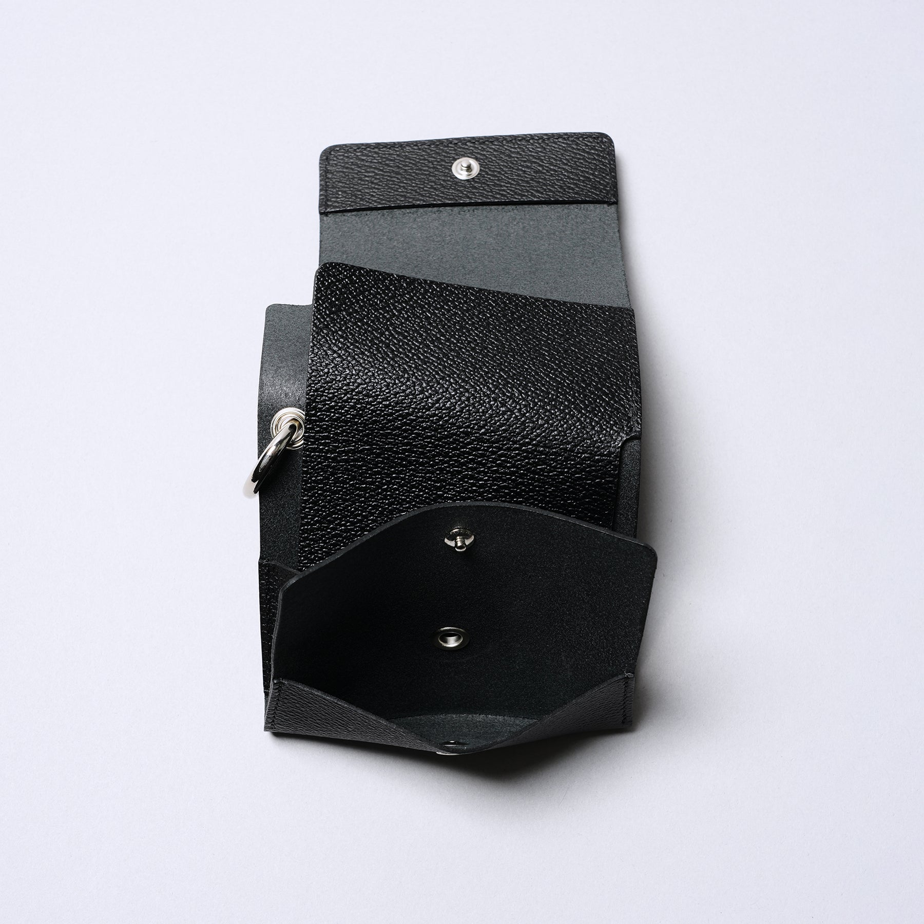 這款三摺式錢包以獨具巧思的結構設計,輕巧收納零錢、卡片與紙鈔。此款錢包於製作時將錢包的版型裁片如拼圖般精密,不浪費任何材料。背面的登山扣則設計為可拆卸式。