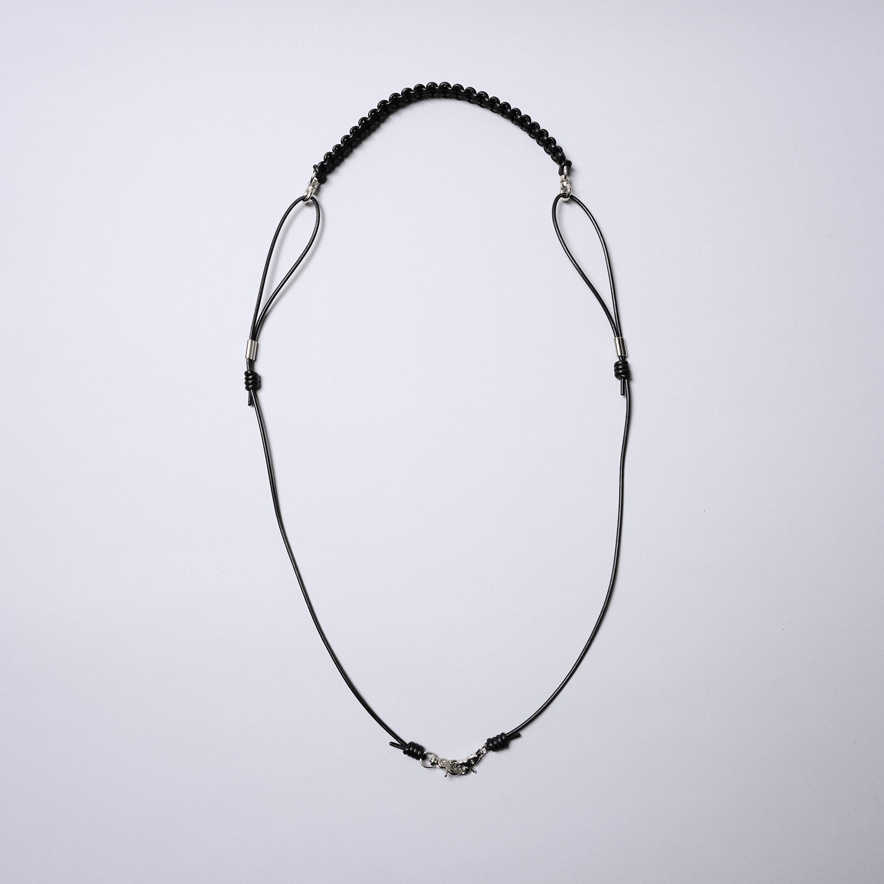 這款多功能掛繩背帶為了在背用時可減少肩部負擔,於肩部位置飾以皮革編織造形。