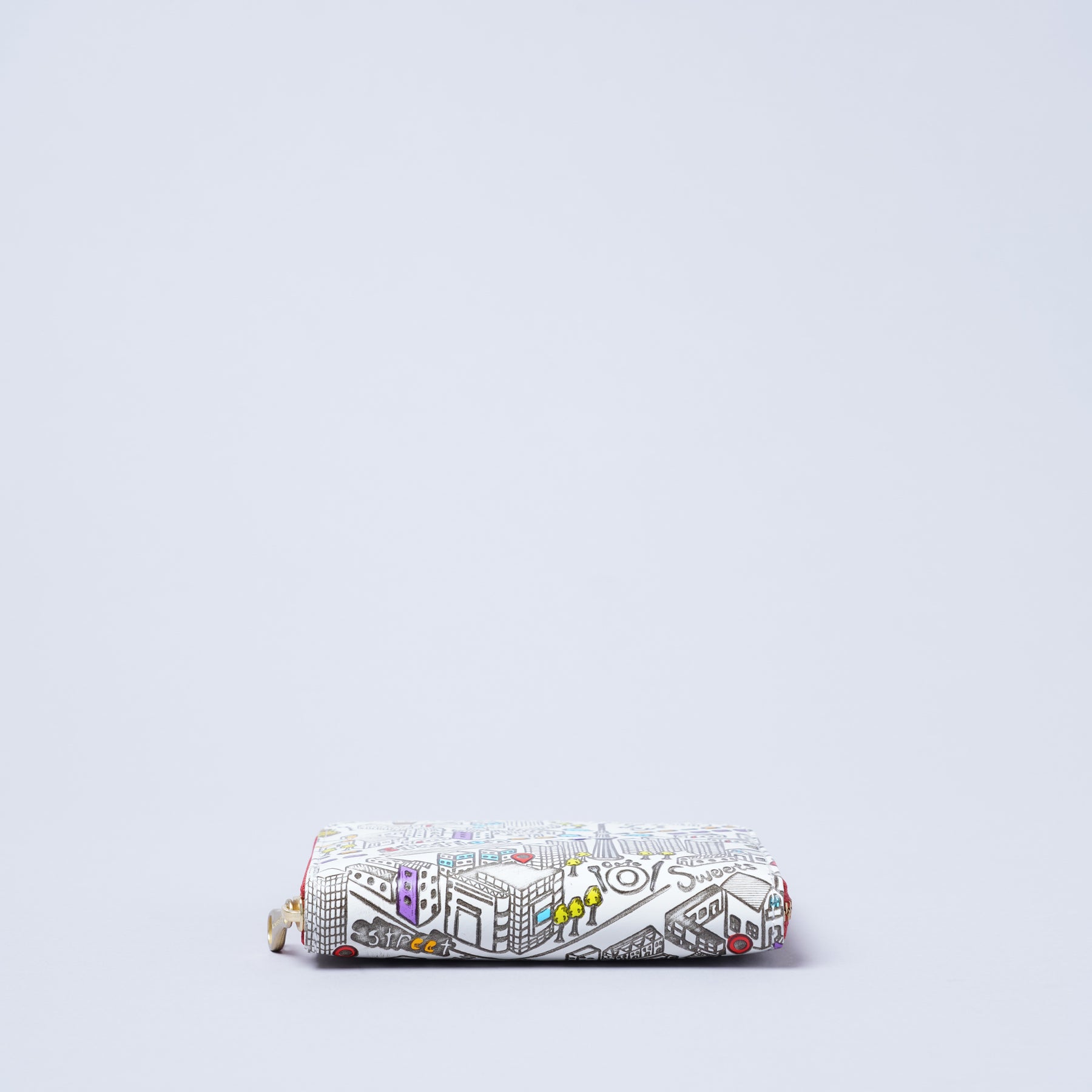 この「TOKYO」シリーズは、カジュアルをテーマに制作しました。日本・東京を象徴するランドマークをモチーフとして各所散りばめたデザインで、6色の彩色がなされており見るだけで元気になる遊び心のある柄に仕上げました。白くなめした本革に職人が一つひとつ丁寧に彩色を施した所作から仕上がりまで温もりのあるアイテムです。