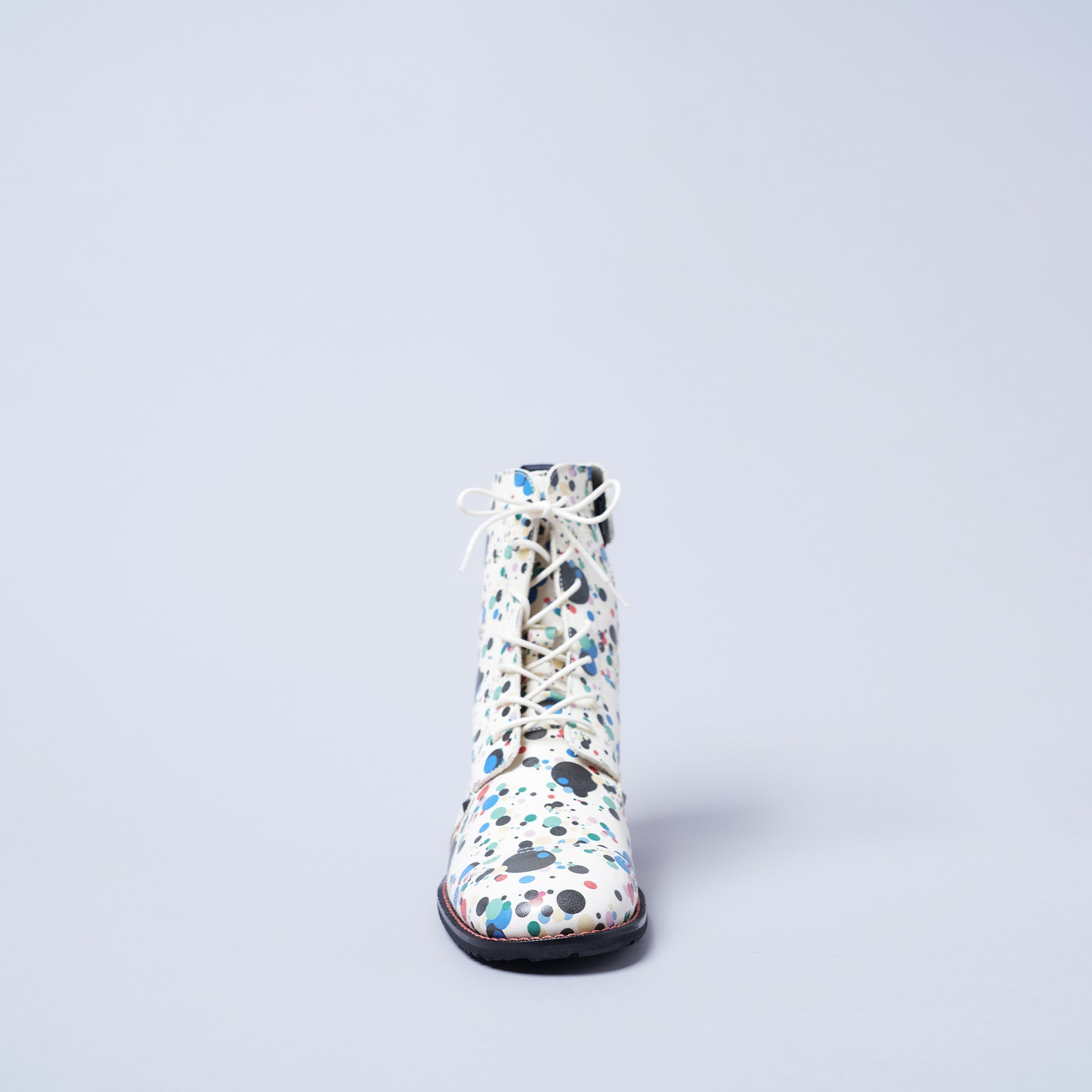 鞋面採用原創圖案點點花紋(Liberty Dot),雖然看起來非常鮮豔,卻意外地百搭,存在感十足又可與各種服裝搭配穿著。