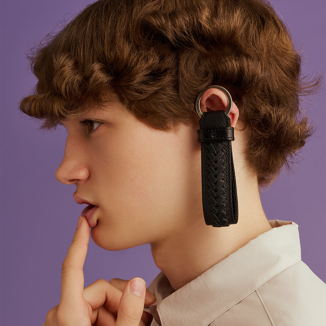 這款採用品牌標誌的設計,於皮革上飾以手工縫製而成的箭形縫線。 為能充分利用皮革不浪費資源,配件材質選自製作包款等商品時所剩餘的皮革。 皮革則來自H.C.P(Hermès Cuirs Précieux)旗下Annonay公司所生產的小牛皮。 此款鑰匙圈特以「TOMORROW」命名,為明日寄託希望與願景。