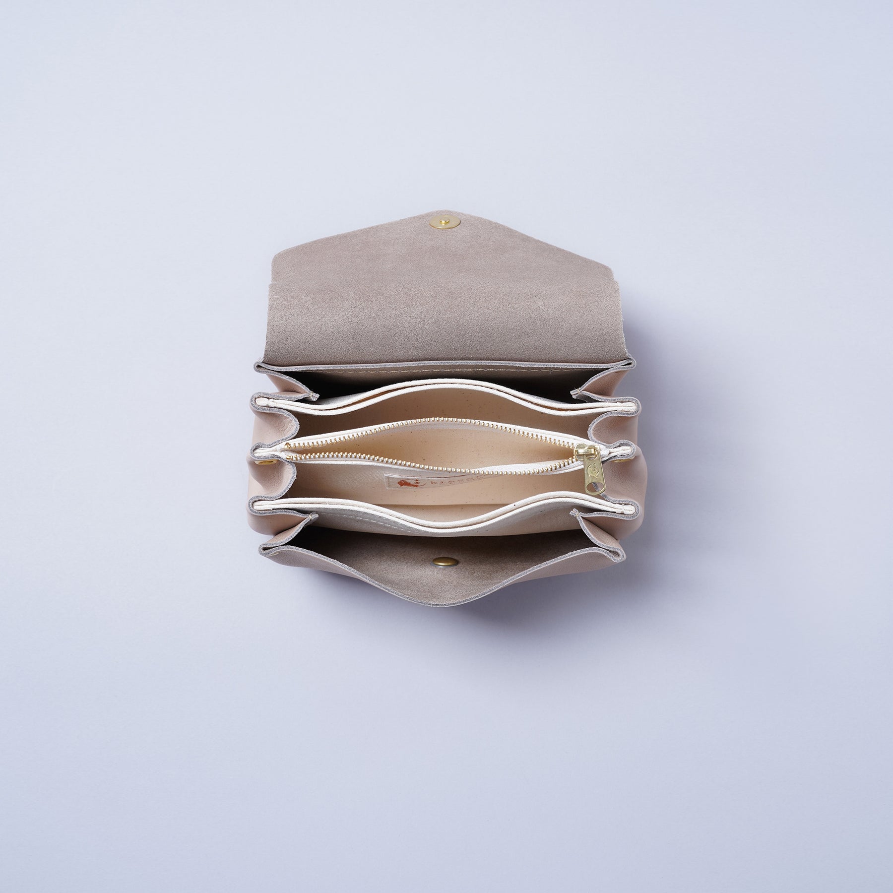這款隨身包選用日本姫路產塗油皮革製作而成,富含油脂的皮革,擁有仿彿能貼合在手掌的絕佳觸感,隨著使用時間經過,還能享受皮革獨特的色澤舊化樂趣。包包表面呈現出的紋理特徵令人感受到皮革原始魅力,肩背帶等配件則使用厚實的NUME皮革以一枚革奢侈製成。