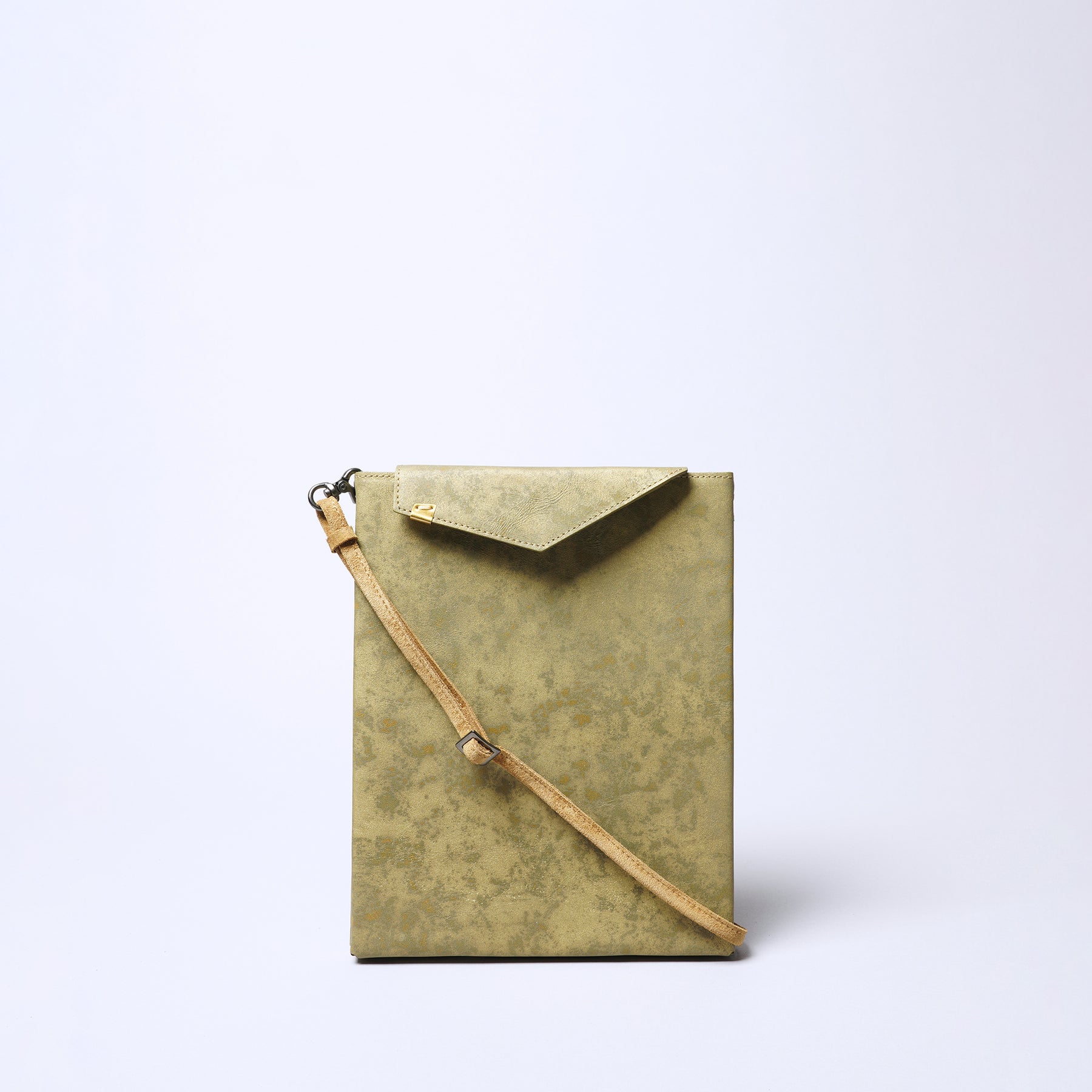 🇯🇵這款11.5英吋薄型皮革收納套是採用黃銅鏽加工處理之皮革製成。此種材質乃由皮革職人依據積累經驗及藝術感將一片片皮革噴塗黃銅或紅銅,使之產生鏽化效果,進而精心製作成具有工藝品等級的皮革。
