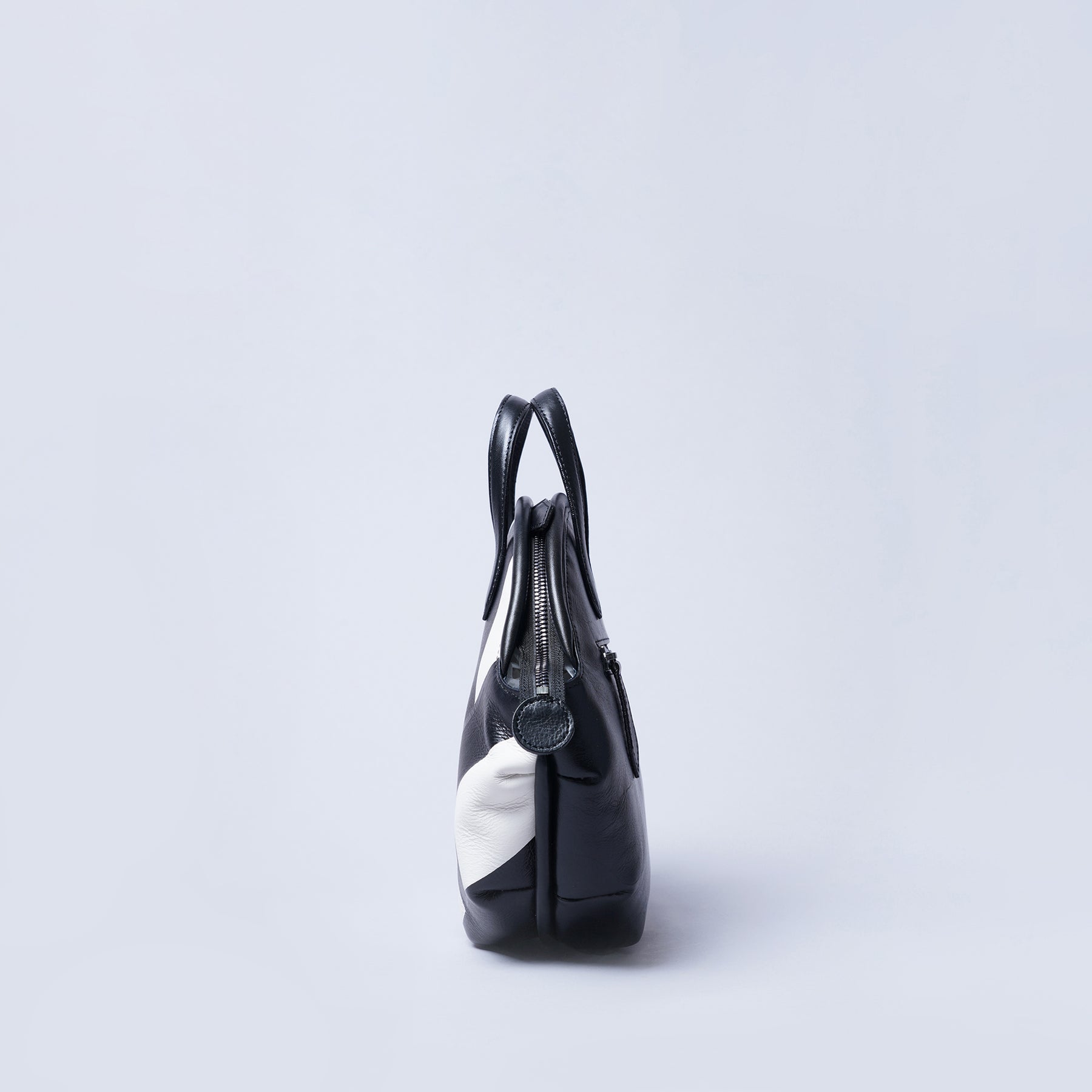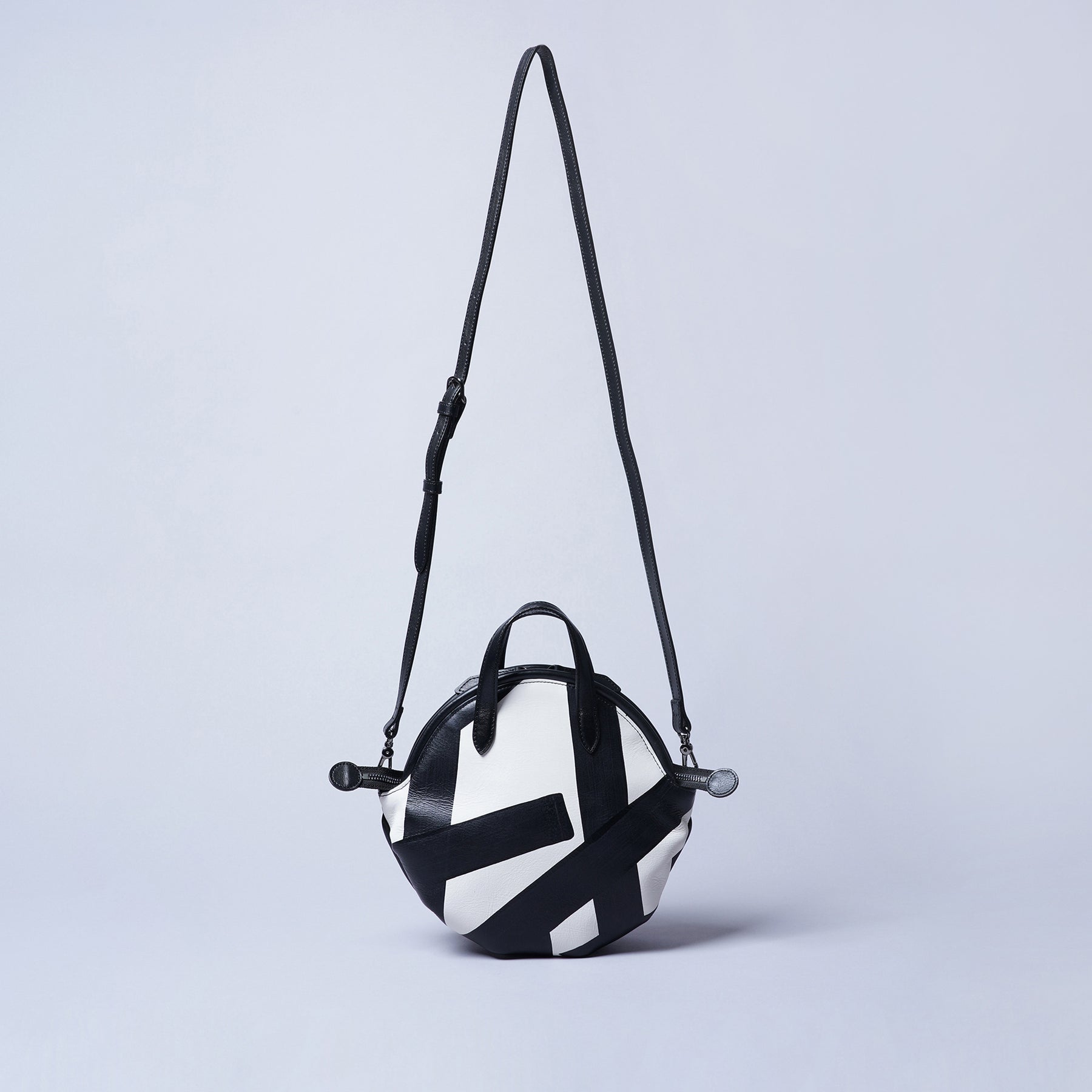 此系列商品大膽運用手繪牛皮,傳遞摩登時尚氛圍。黑白單色圖樣設計,易於與各種造型搭配,材質選用高級輕盈牛皮,恰到好處地維持包款造型。特意在拉鍊兩端加上流行的圓形裁片,增添玩味性。這款兩用包因圓潤的造型以及恰到剛好的尺寸,更加凸顯手繪設計,展現出獨特風格。