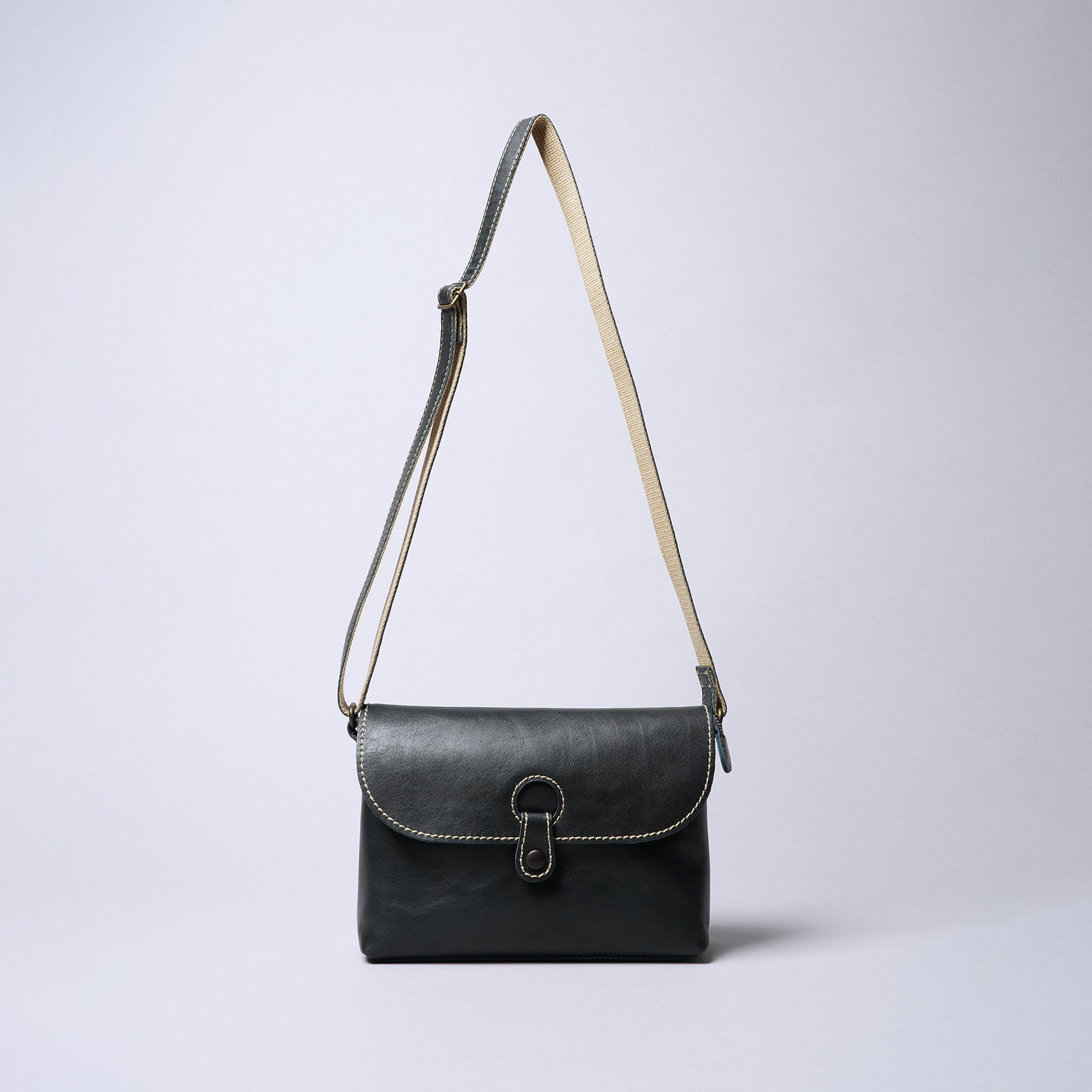 這款斜背包使用表面富有細緻紋理的牛皮製作,搭配較粗的0號縫線,並飾以包覆式按扣,是品牌旗下長年熱銷的商品系列。內裏選用的圓點圖案材質也是商品的特色之一。還可享受皮革隨著使用時間經過產生的質感變化,越使用將越柔軟,呈現出豐富多彩的魅力。
