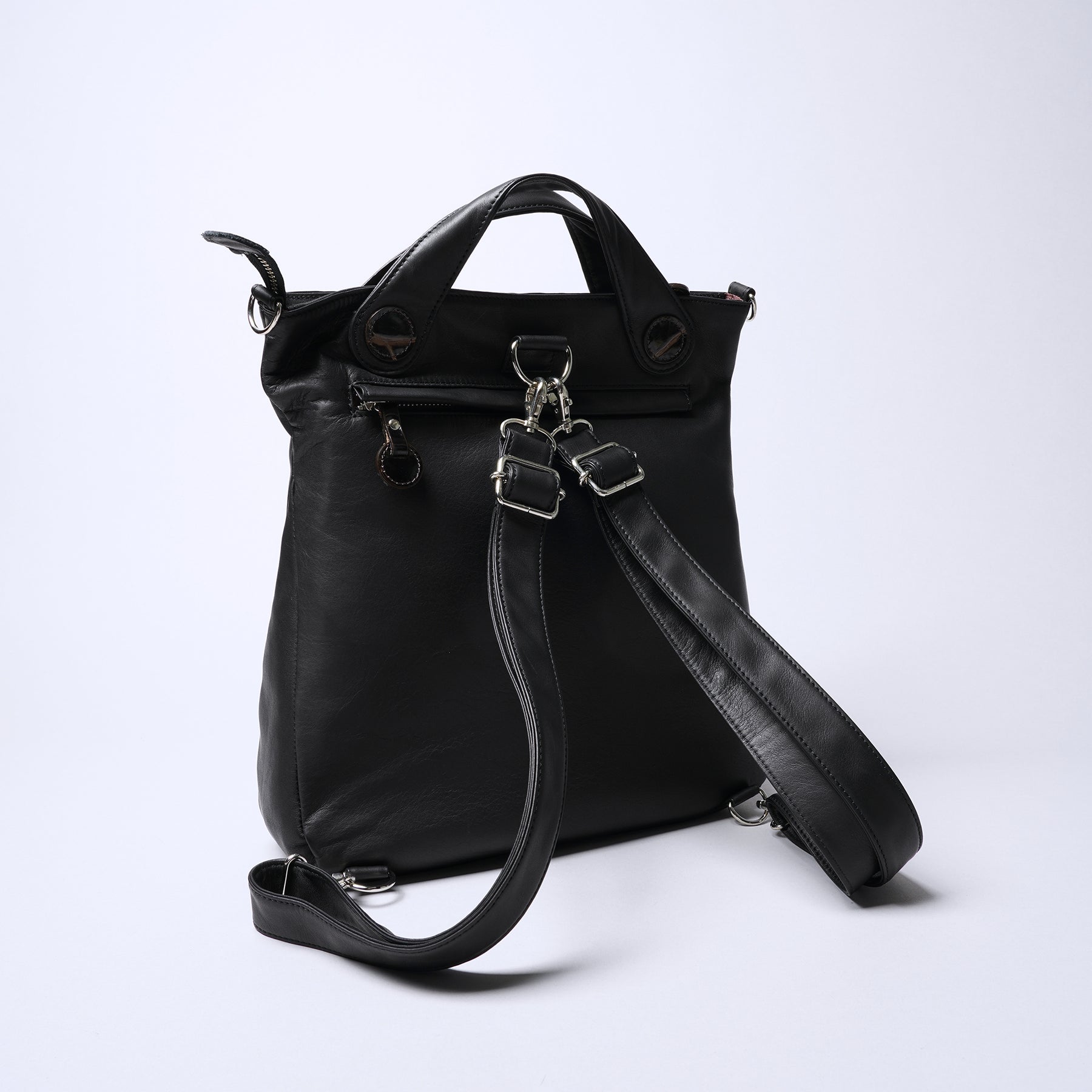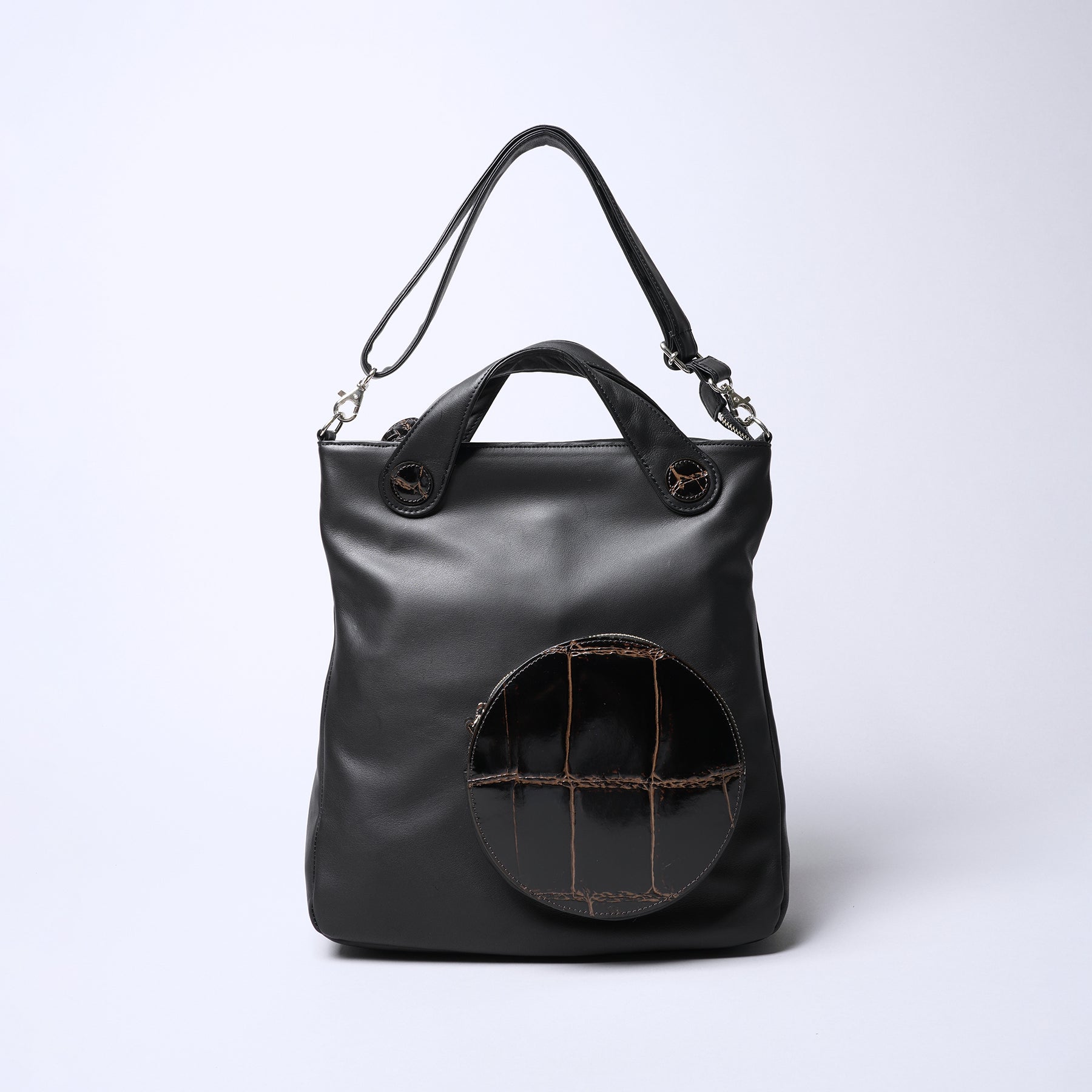 Apollon特色系列包款,採用優質素面塗油皮革製作並飾以大型鱷魚壓紋口袋。透過連接肩背帶,可依使用需求變化為後背包、斜背包或單肩包等三種不同背法。