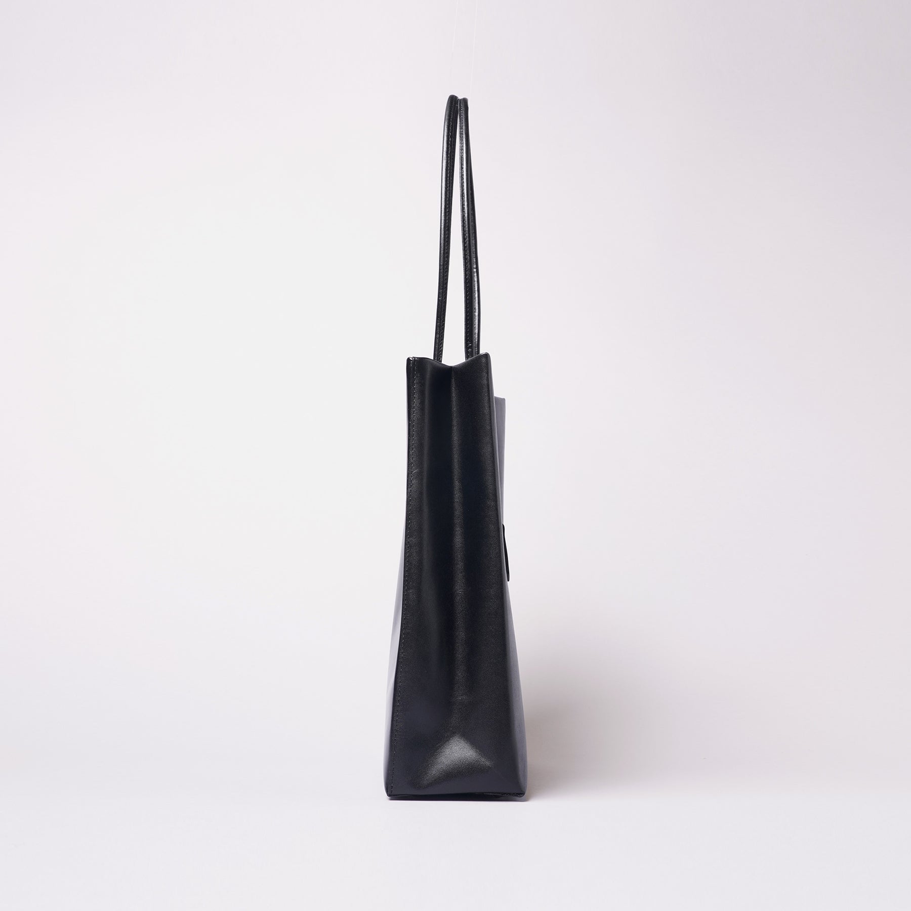以紙袋為零感設計而成的極簡牛皮包。外觀盡可能隱藏縫線,凸顯漂亮的外形及率性感。純黑的皮革使整體造型看起來更加優雅。包款側面採用開槽工法,富含職人技藝。大小設定在A4尺寸,富有良好使用功能。考量著用感,提把設計在穿著外衣也能背在肩上的高度,適用在工作場合或收納物品多的時候。 包款開口設計一觸即可開關的磁扣,可以快速找到需要的物品。包包外側有1個拉鏈口袋、內側有2個開放式口袋、1個拉鏈口袋,使物品可整齊收納容易尋找。優雅簡約的設計,易於搭配任何服裝,給人俐落乾練的印象。estine以「時尚」、「藝術」、「當代」為關鍵字,自許超越框架,為追求自我表現的人傳達有智慧的現代都市時髦風格。