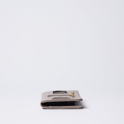 這款薄型設計的證件套,打開後左右可用金屬釦固定,內側可收納三張卡面、背面並設有一個卡片收納夾層。