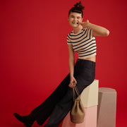 這款使用厚實且富光澤的壓花皮革製作而成的包款,完美融合日本抽繩設計,散發出和諧的日式氛圍。皮革富有韌性,即使包包淨空也可維持獨立外形。儘管外形小巧,仍能剛好容納500ml寶特瓶尺寸,作為日常使用的迷你包而言,是一款具有充足容納量的包包。並非典型的抽繩風格,而是在包包開口處採用兩條皮繩交叉設計。這款包包以日本古老束口袋為靈感,加入現代風格轉化設計,不分性別男女皆適宜使用。